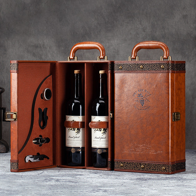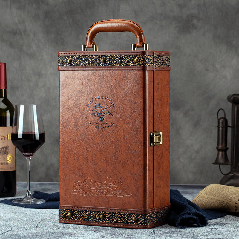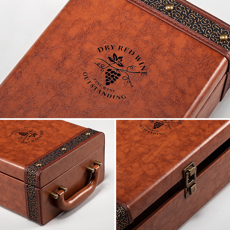 红酒包装礼盒双支装红酒皮盒酒盒通用手提袋2高档葡萄酒箱木盒