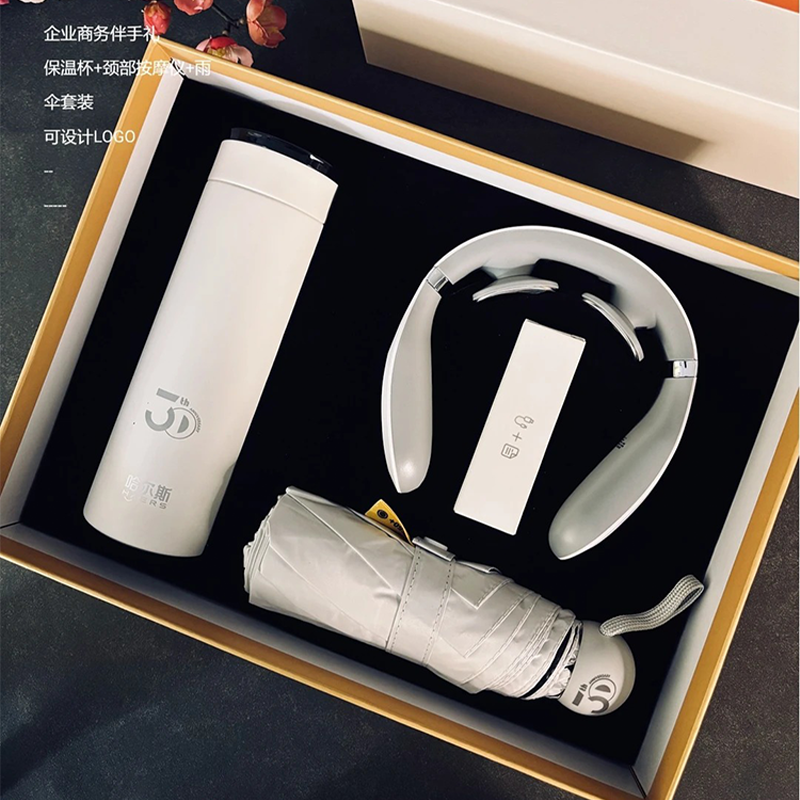 高端商务伴手礼保温杯颈椎按摩仪雨伞礼盒可印logo企业礼品定制