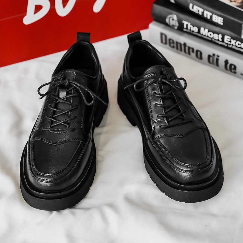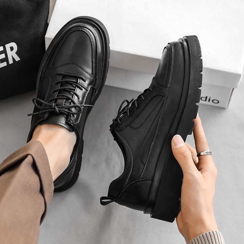 皮鞋男款夏季透气男士休闲工装英伦风新款大头厚底德比低帮马丁靴