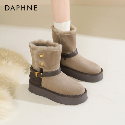 达芙妮厚底雪地靴女两穿保暖棉鞋
