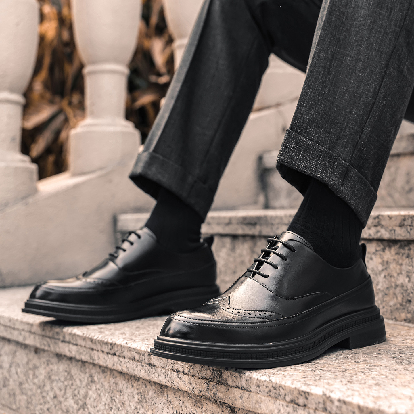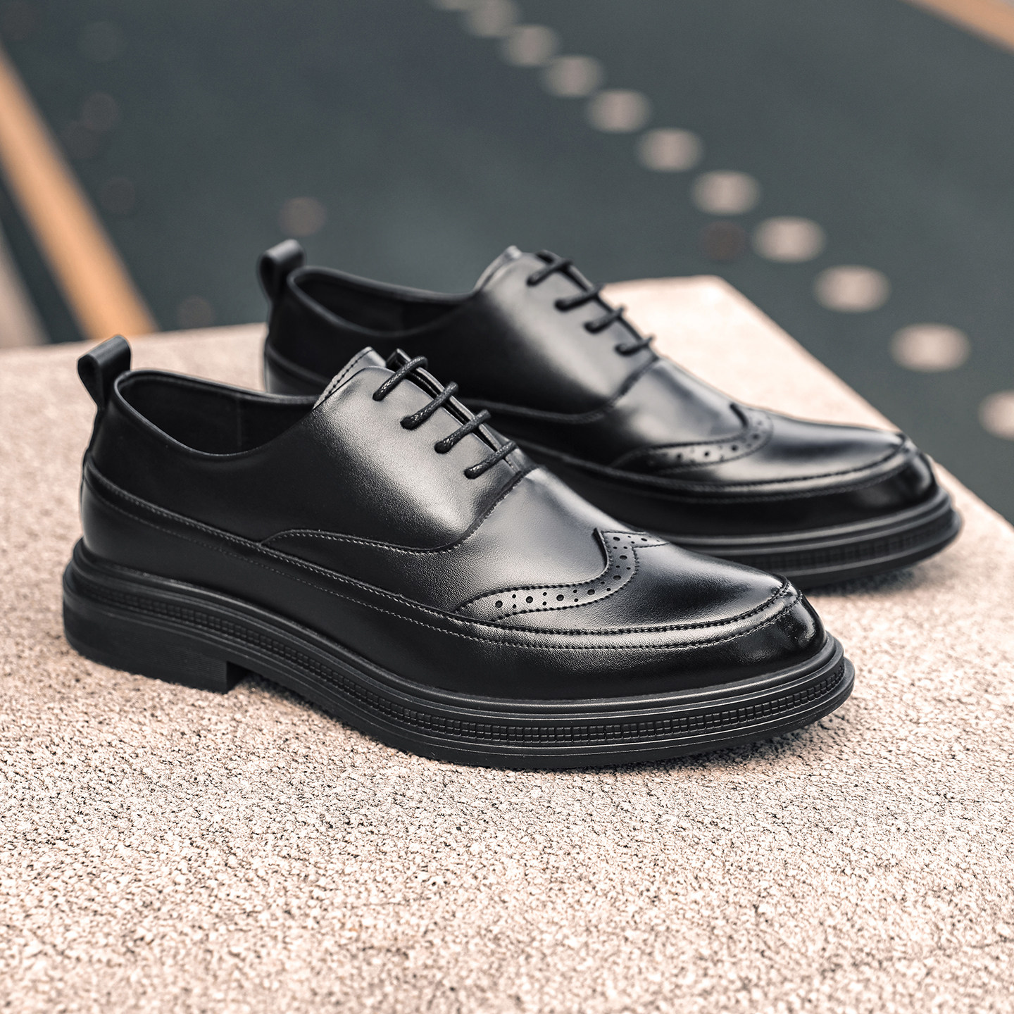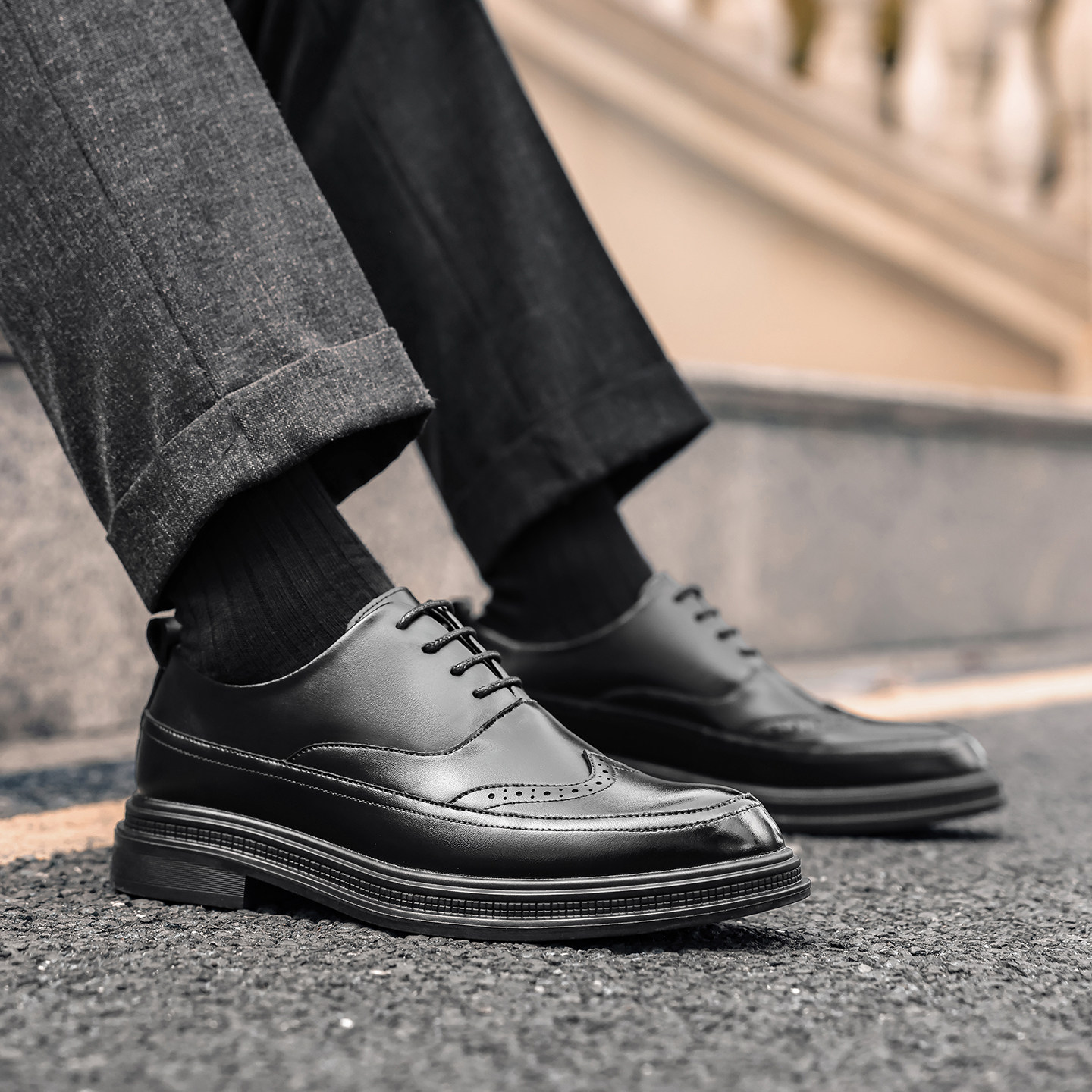 商务正装皮鞋男士内增高鞋布洛克雕花英伦风4748码大码西装男鞋子