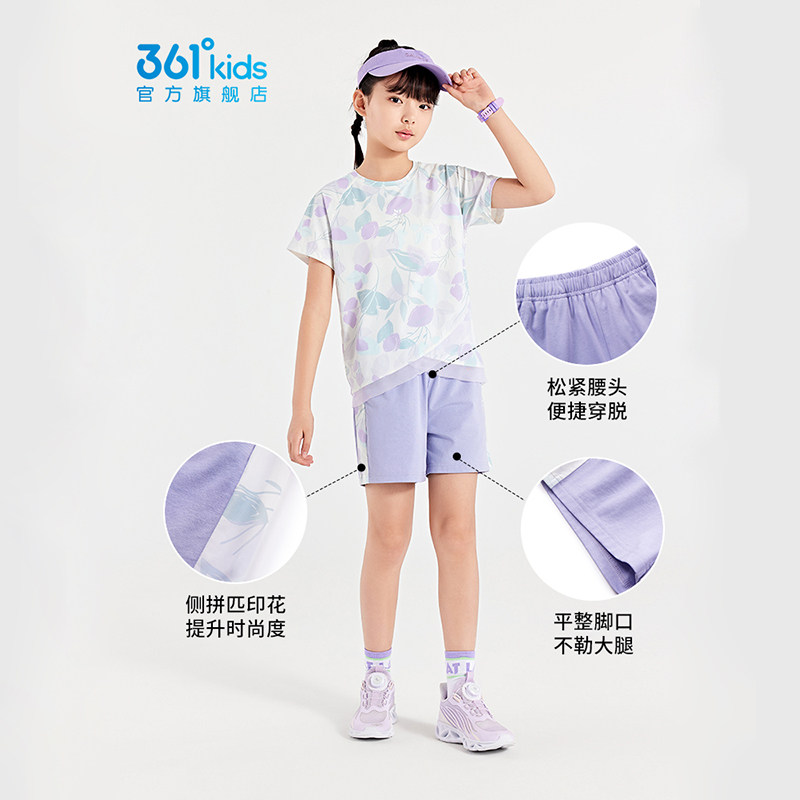 361°女童针织短裤速干新品2024夏透气中大童拼色五分裤N62421501