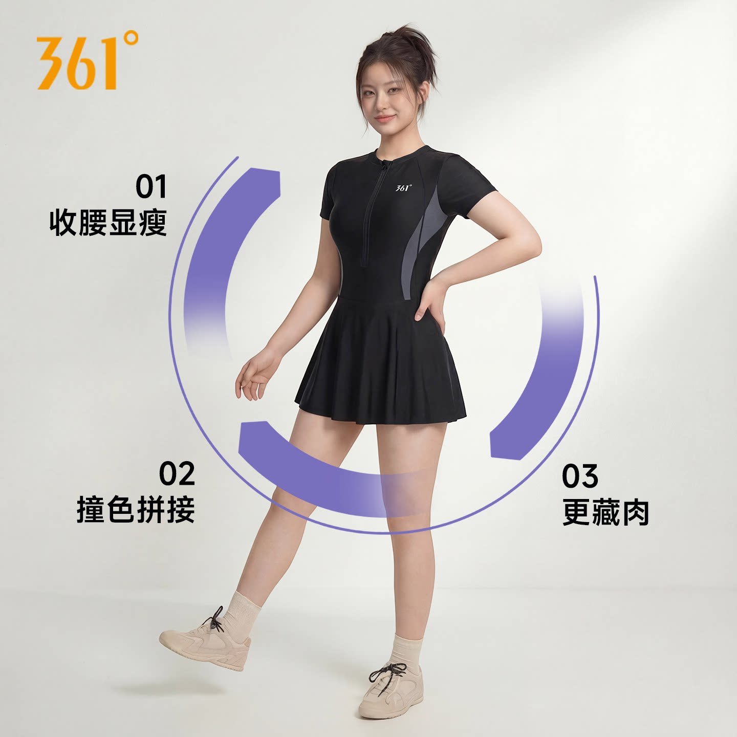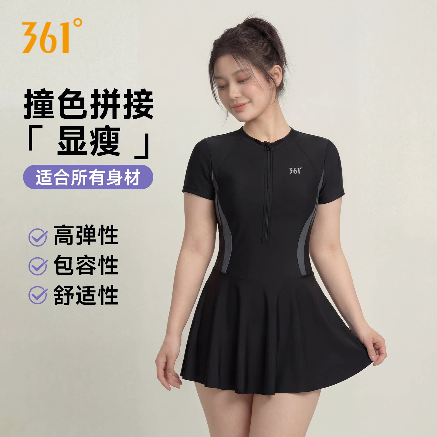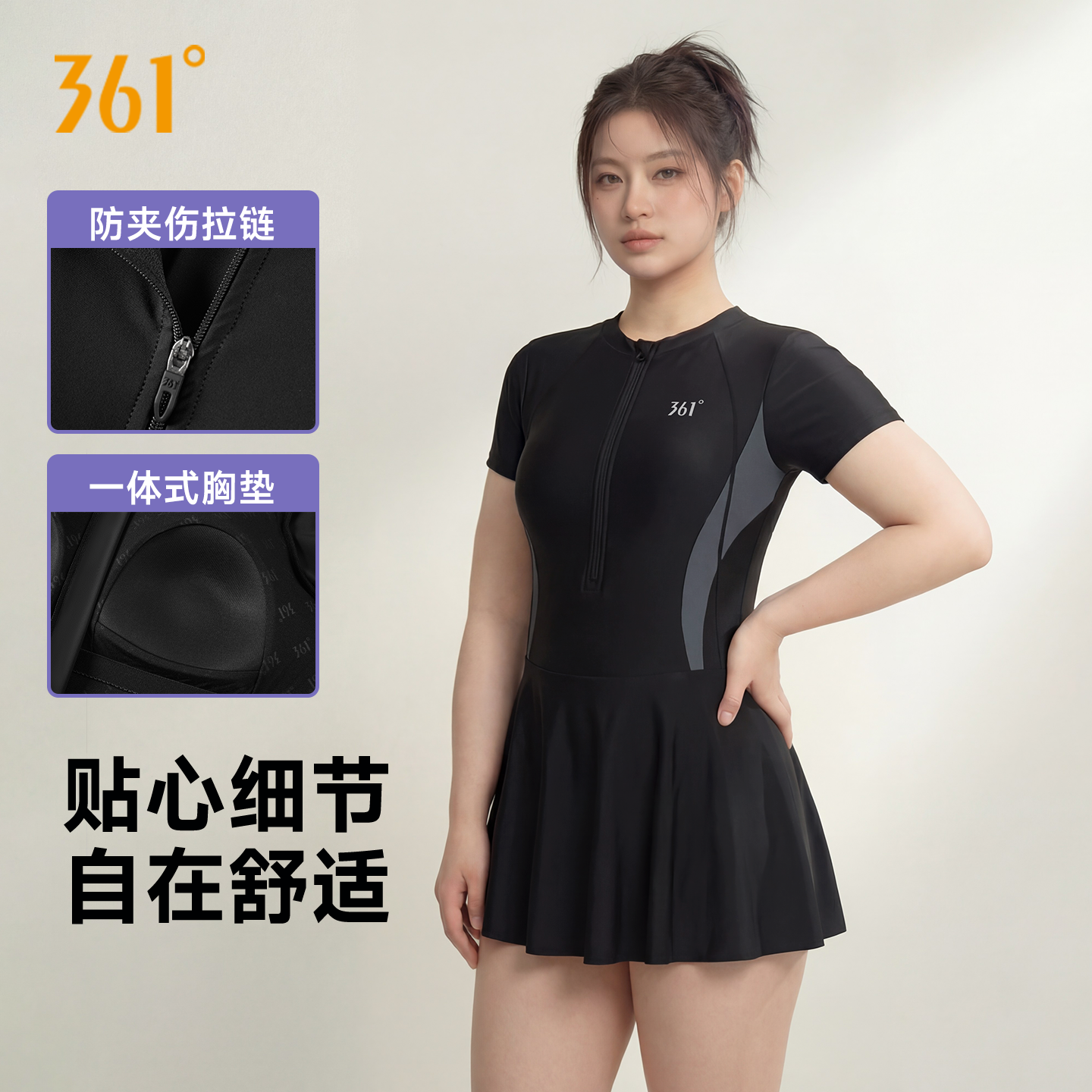 361°游泳衣女款大码泡温泉微胖mm200斤大胸女孩遮肉显瘦连体泳装