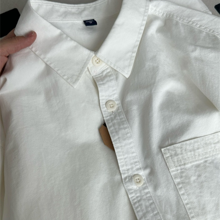 100%斜纹棉正肩白色衬衫内搭叠穿宽松长袖上衣日系男女情侣款外套