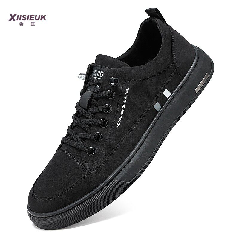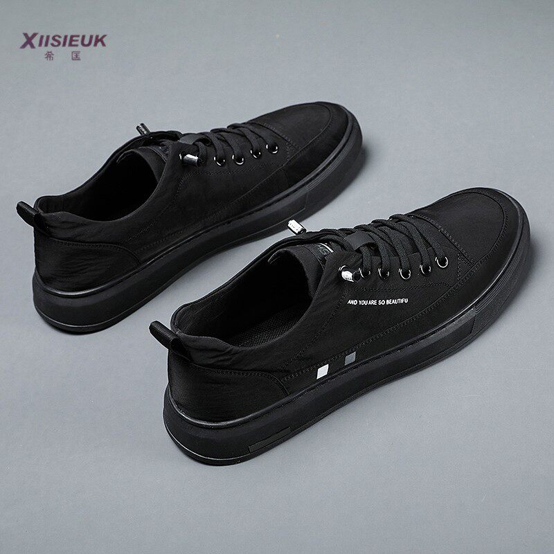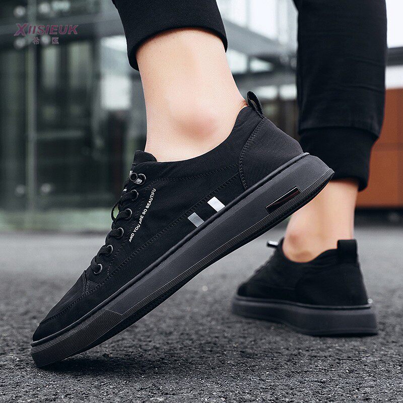 2025男款帆布鞋男透气韩版百搭全黑色不系带懒人布鞋韩式球鞋潮鞋