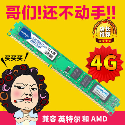 宏想DDR3 4G 1333台式机内存条兼容1600双通道8G内存条电脑运行快