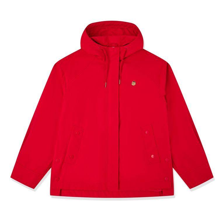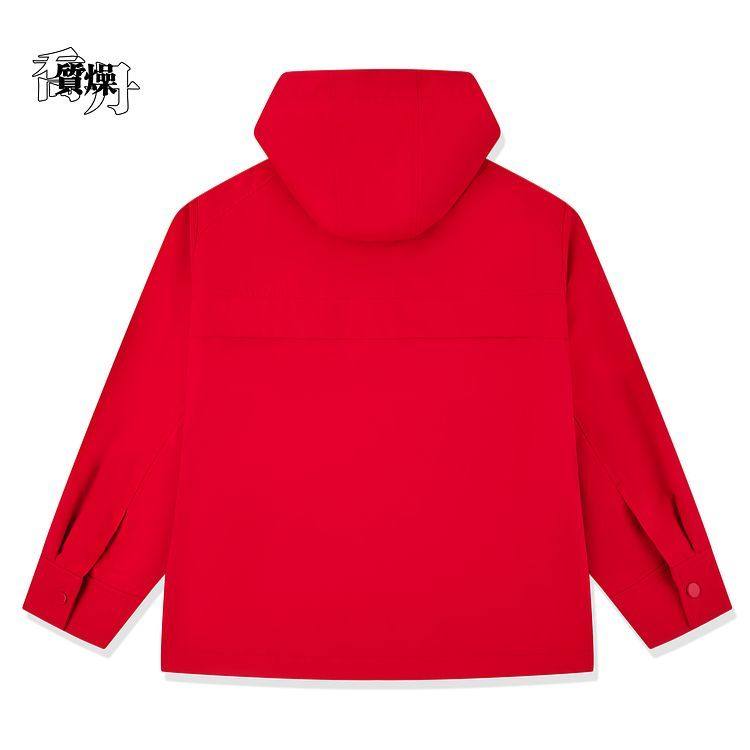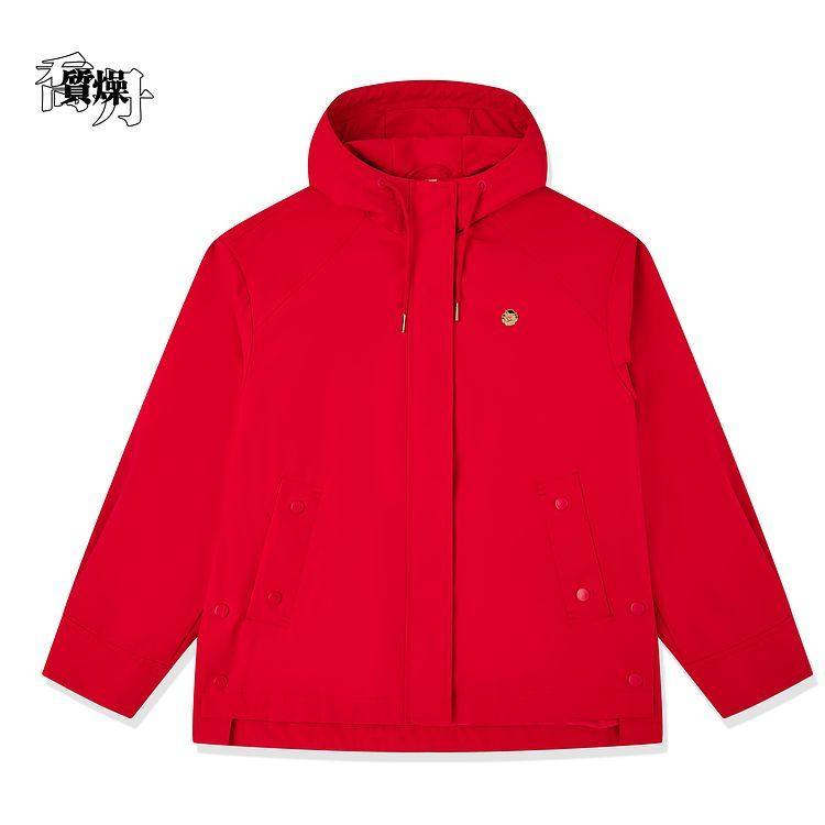 乔丹梭织短款外套女款加绒保暖连帽2026春季新款宽松休闲风衣外套