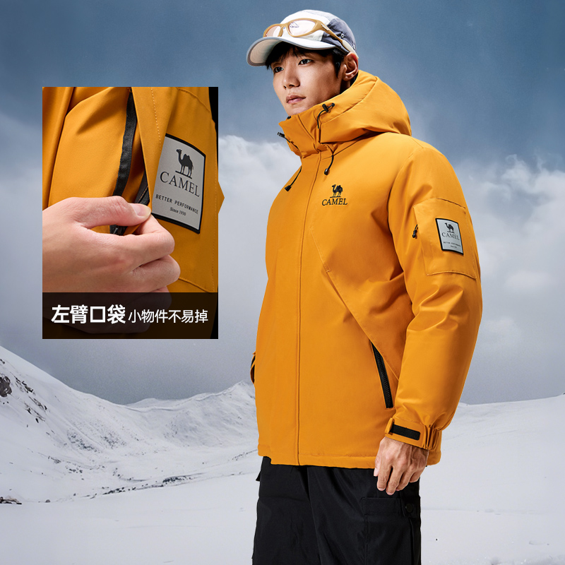 骆驼男装工装机能羽绒服男冬季2025新款连帽加厚保暖防泼水外套男