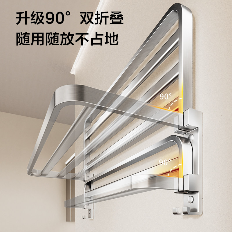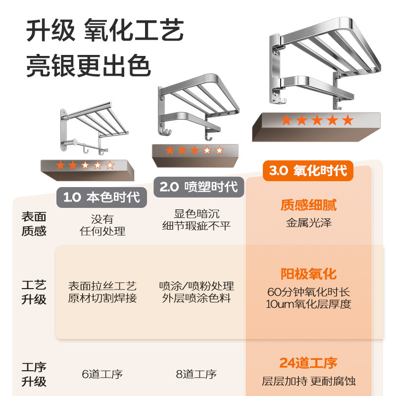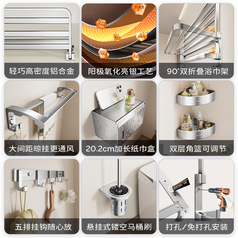 九牧卫浴毛巾架卫生间免打孔置物架太空铝浴巾架五金挂件套装银色