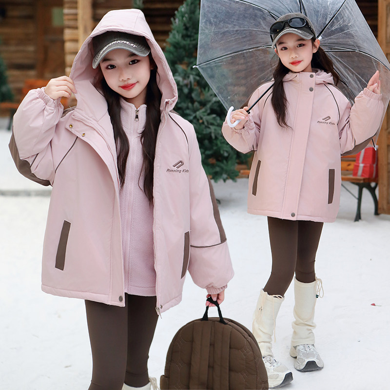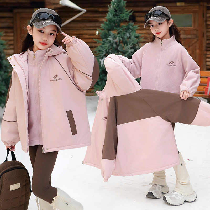 拉夏贝尔女童外套冬季新款儿童三合一冲锋衣中大童女孩加厚棉衣服
