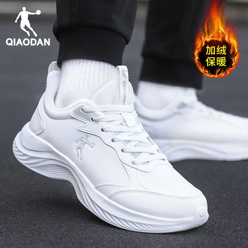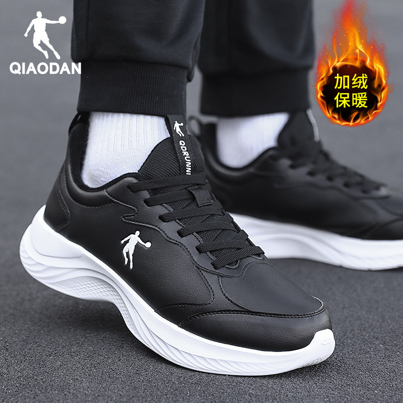 乔丹男鞋冬季新款加绒保暖运动鞋男款休闲鞋子男士皮面防水跑步鞋