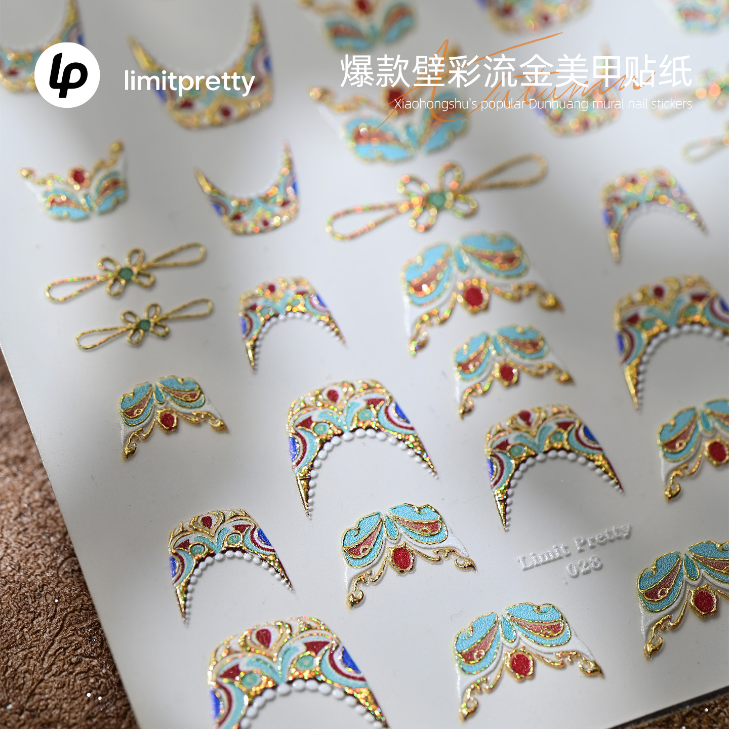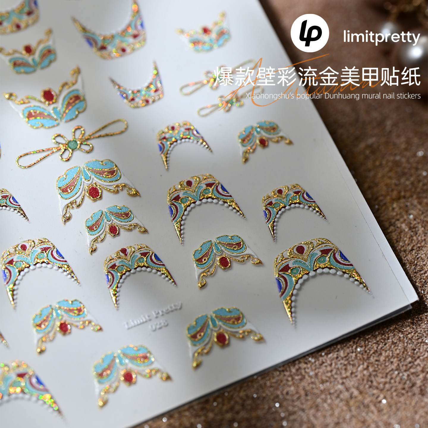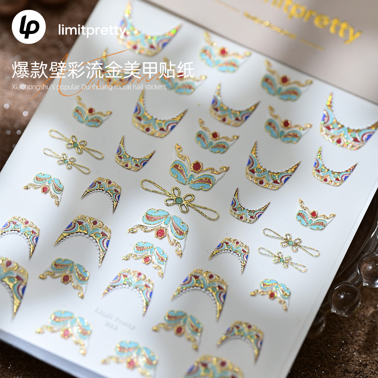 新中式国风典雅壁彩流金美甲贴纸法式花朵浮雕立体穿戴甲装饰品