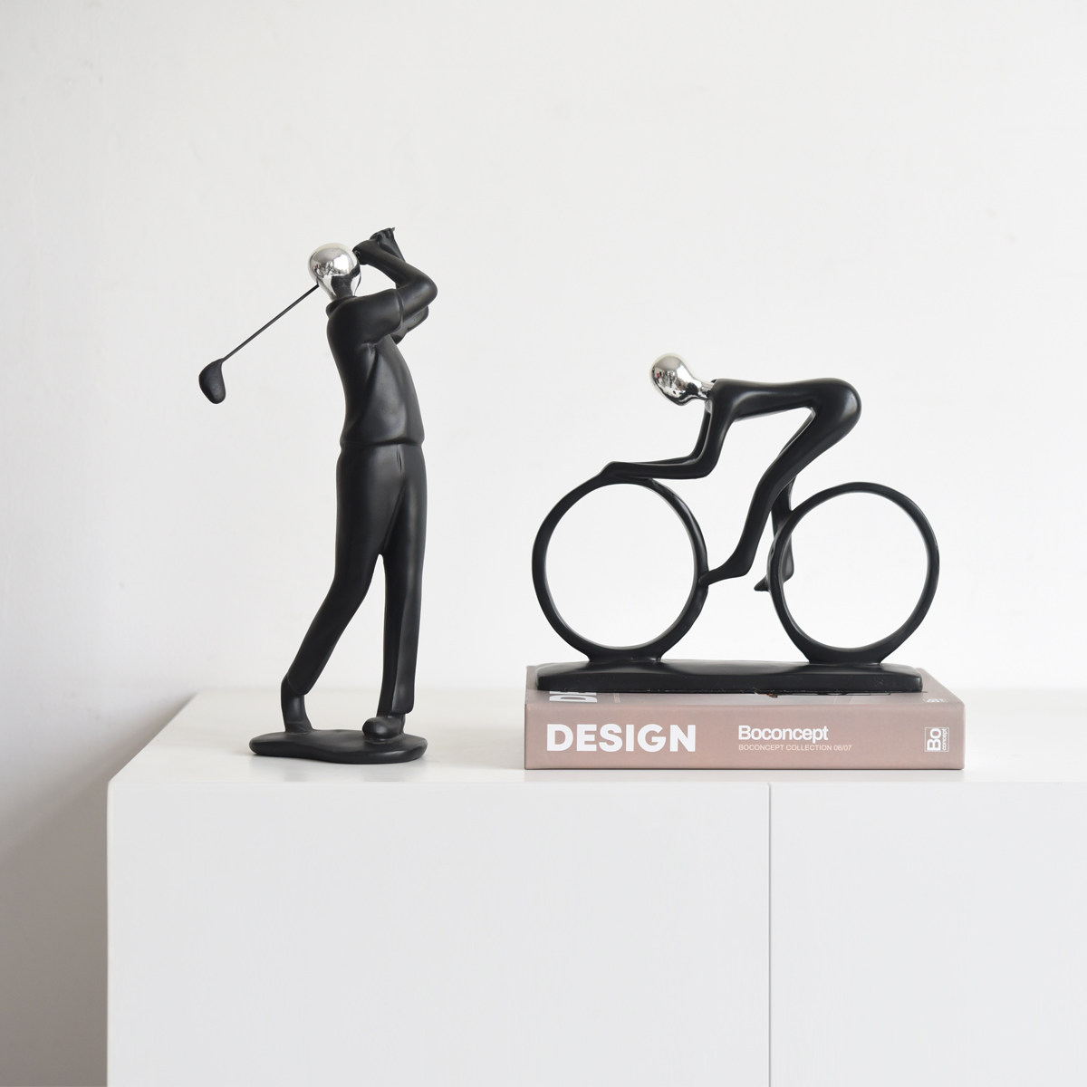 现代简约创意轻奢运动人物样板间客厅书房书柜书架黑白装饰品摆件