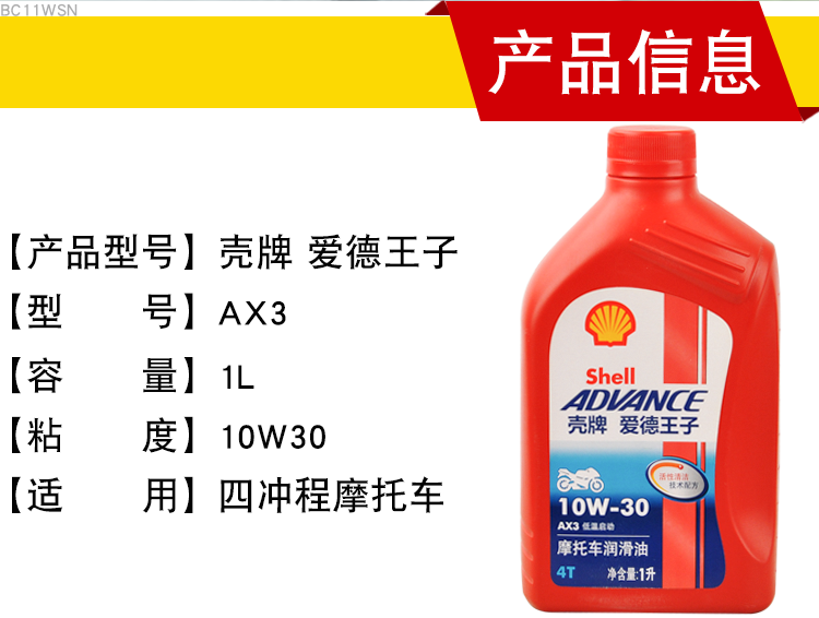 壳牌摩托车机油四冲程 AX2/5/6 10/15W-40爱德王子4T全合成润滑油