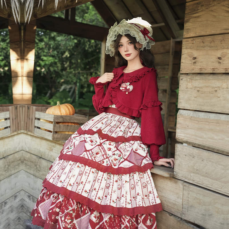 【松果】withpuji原创设计三色娃娃领短款针织开衫秋冬lolita搭配