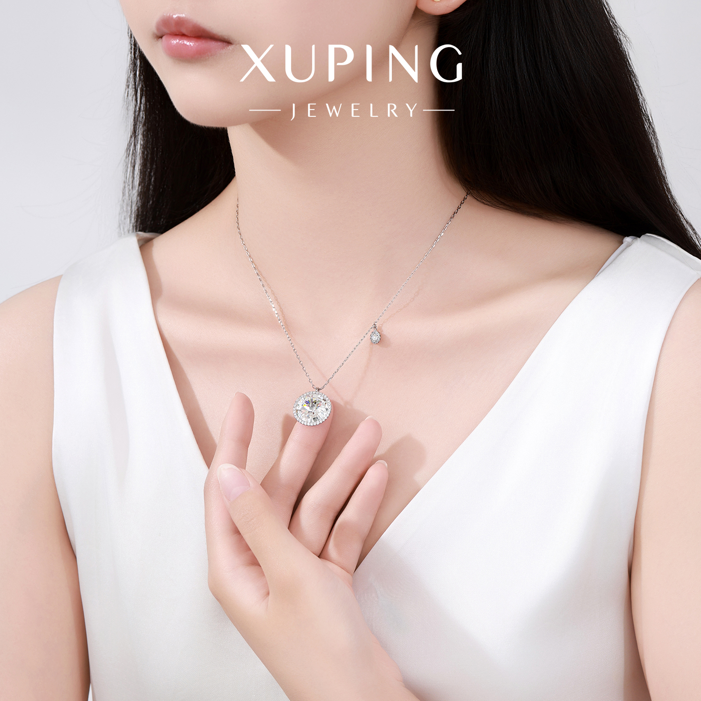 旭平仿水晶系列炫彩色圆饼项链ins风简约设计小清新甜美锁骨链