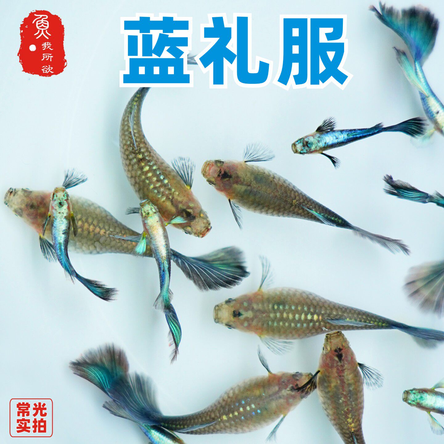 蓝礼服孔雀鱼德系蓝礼服观背凤尾鱼胎生鱼热带小型鱼下崽狂魔鱼