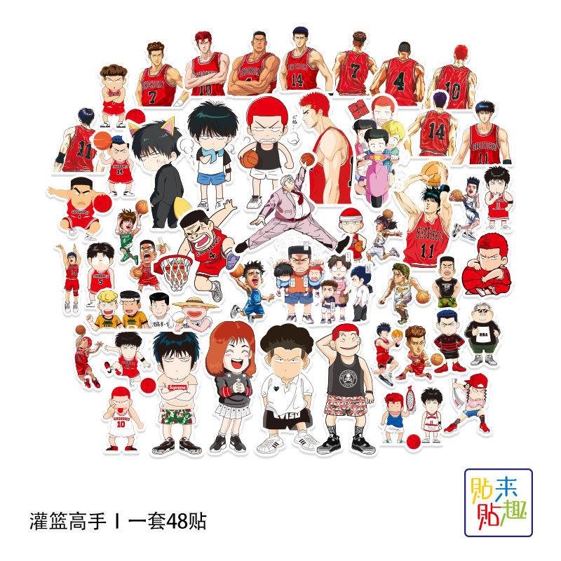48枚灌篮高手动漫卡通小尺寸贴纸个性平板电脑手机 水杯防水贴画