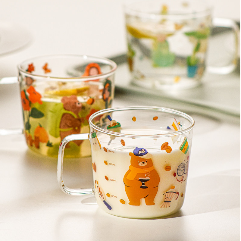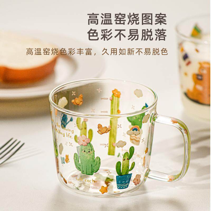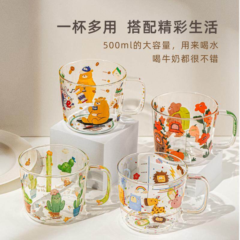 卡通牛奶杯高硼硅玻璃杯带刻度儿童早餐杯家用水杯微波炉可加热