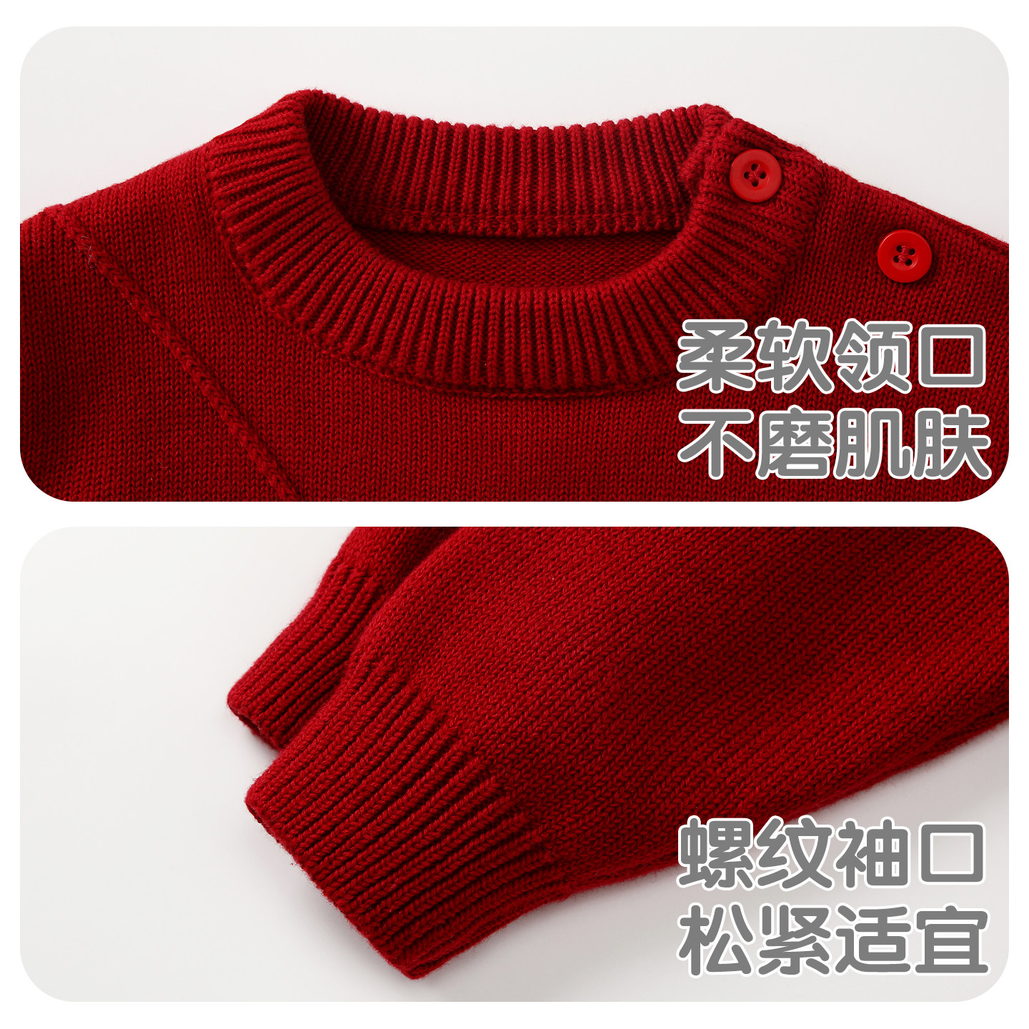 婴儿毛衣套装男宝宝套头冬装保暖红色喜庆新年拜年衣服男童秋冬女