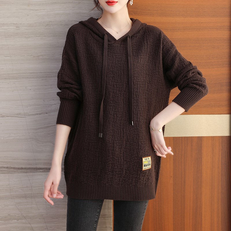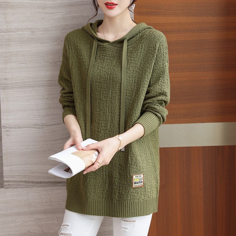 胖mm秋冬特大码羊绒衫连帽毛衣女200斤宽松中长款遮肚羊毛打底衫