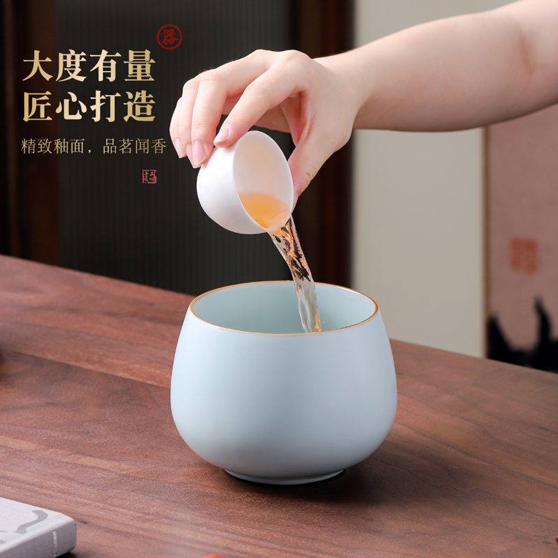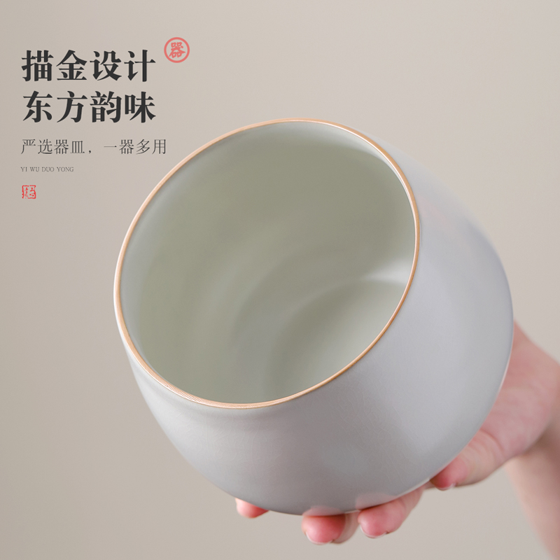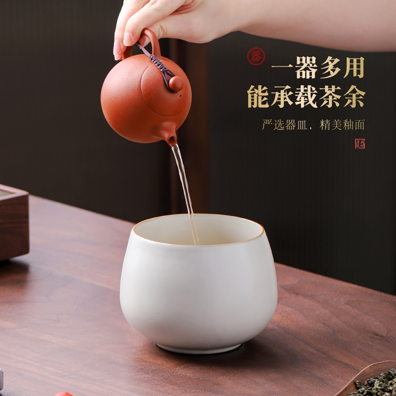 汝窑茶洗缸陶瓷轻奢开片茶具配件茶台笔洗茶盆茶盂水盂茶渣缸中式