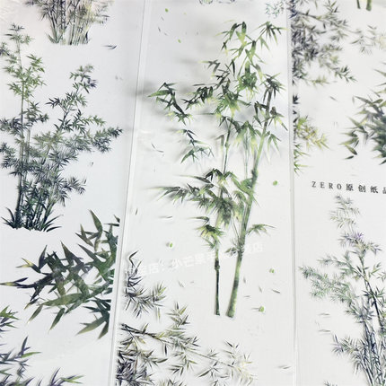 手帐分装胶带墨竹zero绿竹叶植物背景古风PET素材账流麻贴纸咕卡