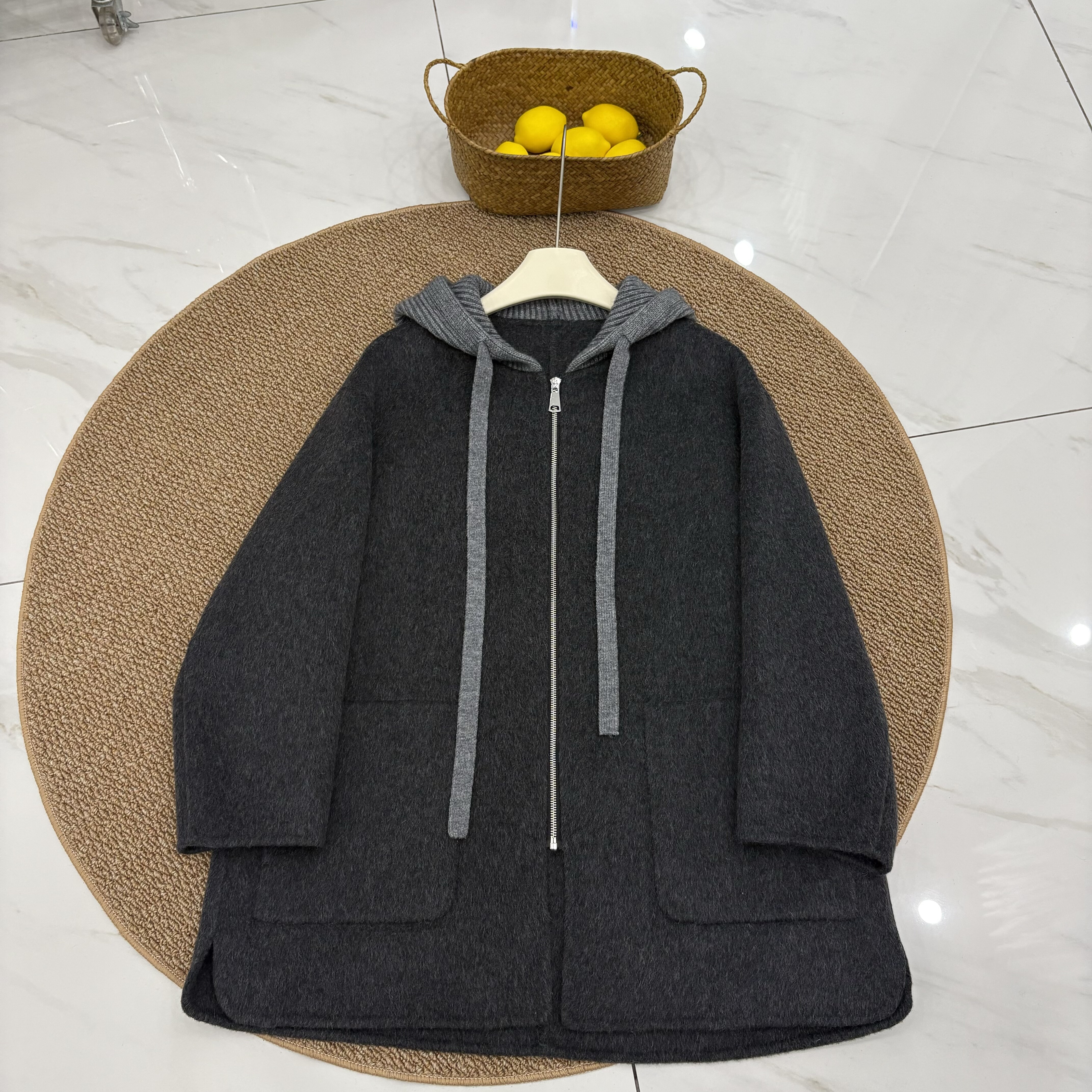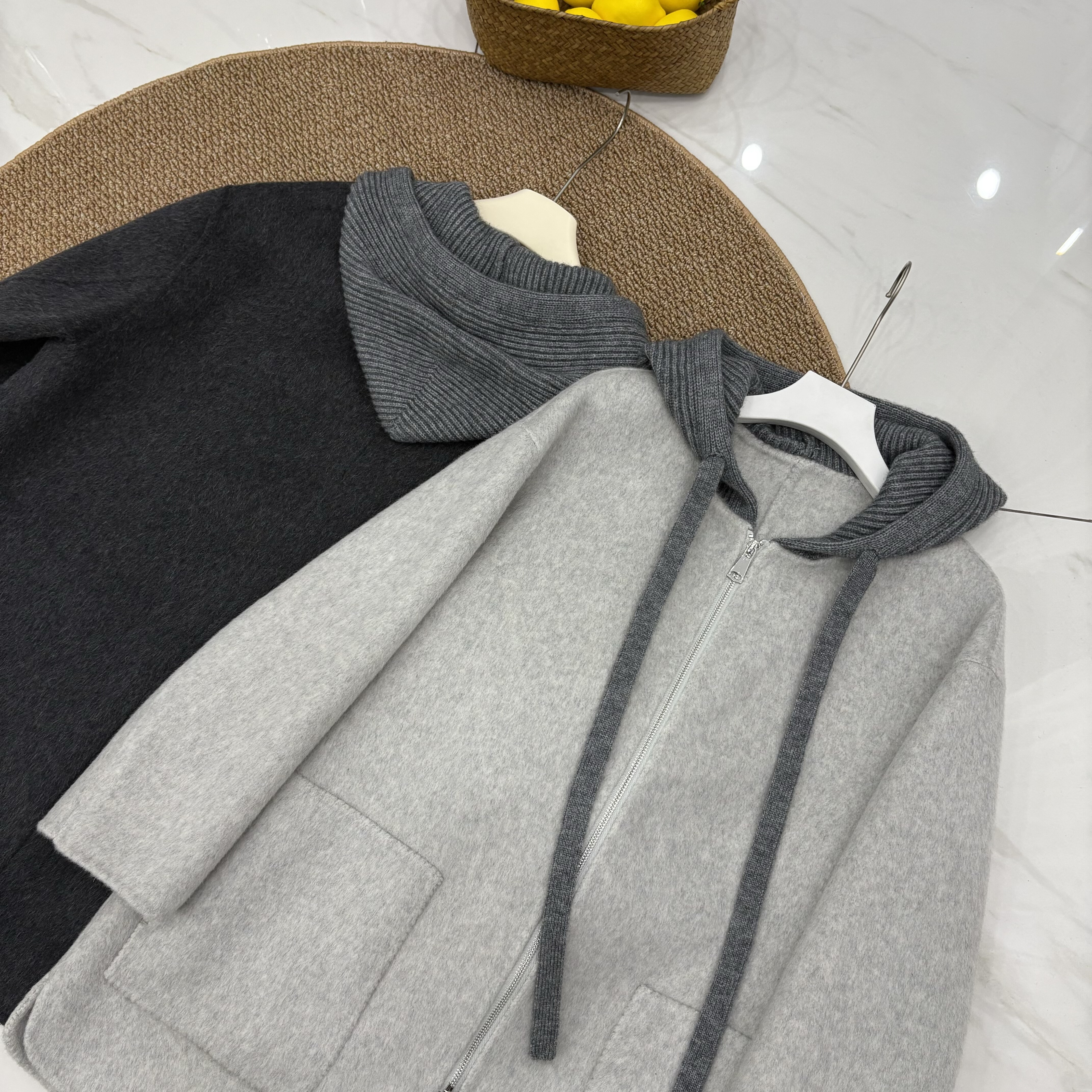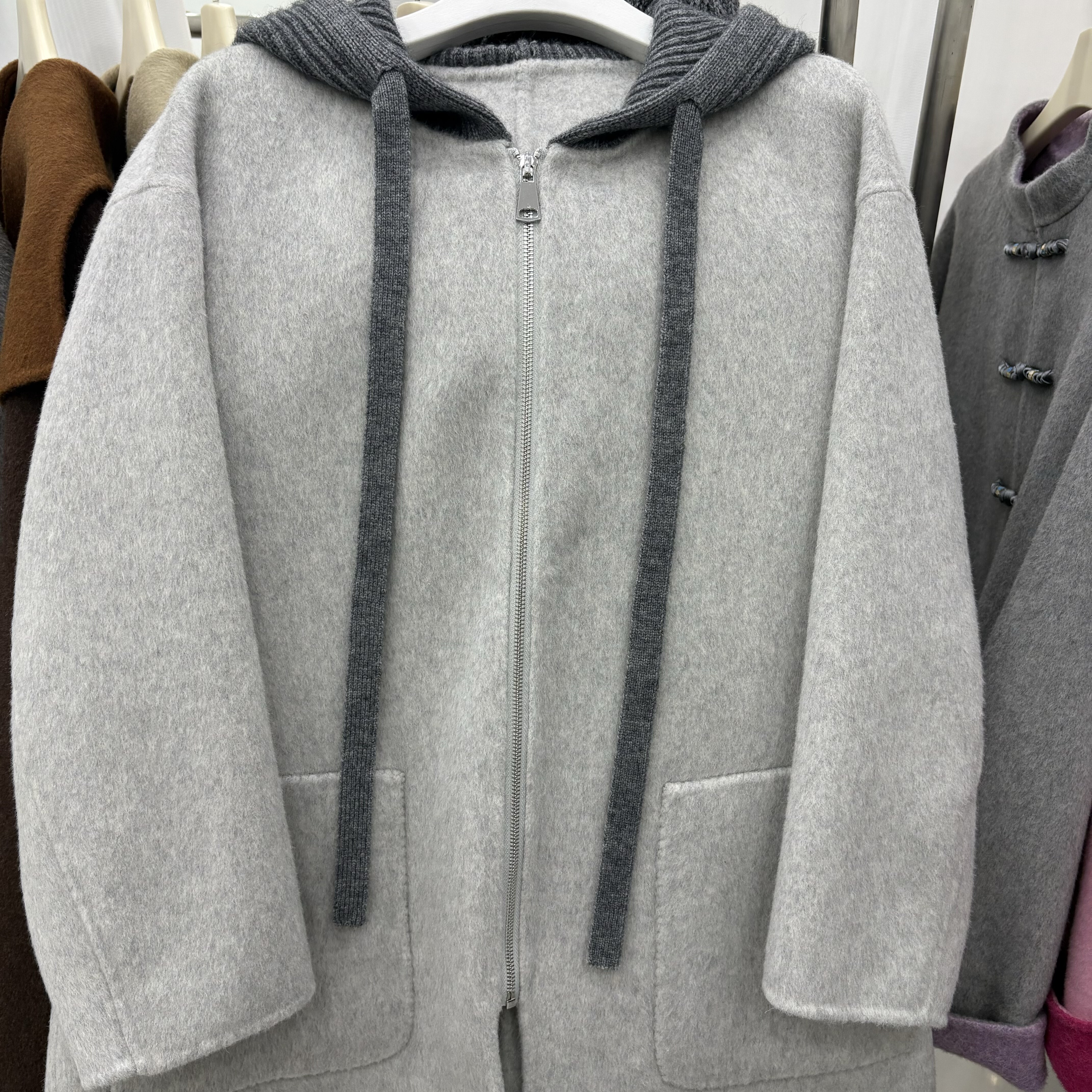 韩版双面羊绒大衣中长款女25秋冬新款连帽宽松显瘦小个子羊毛外套