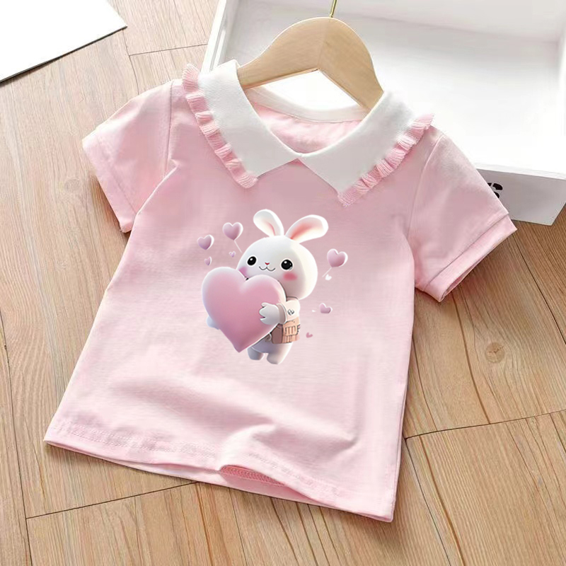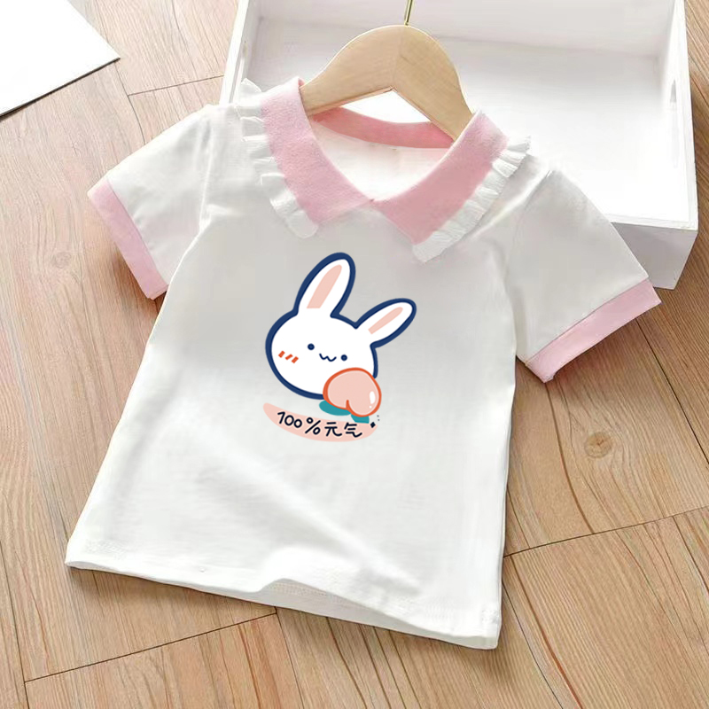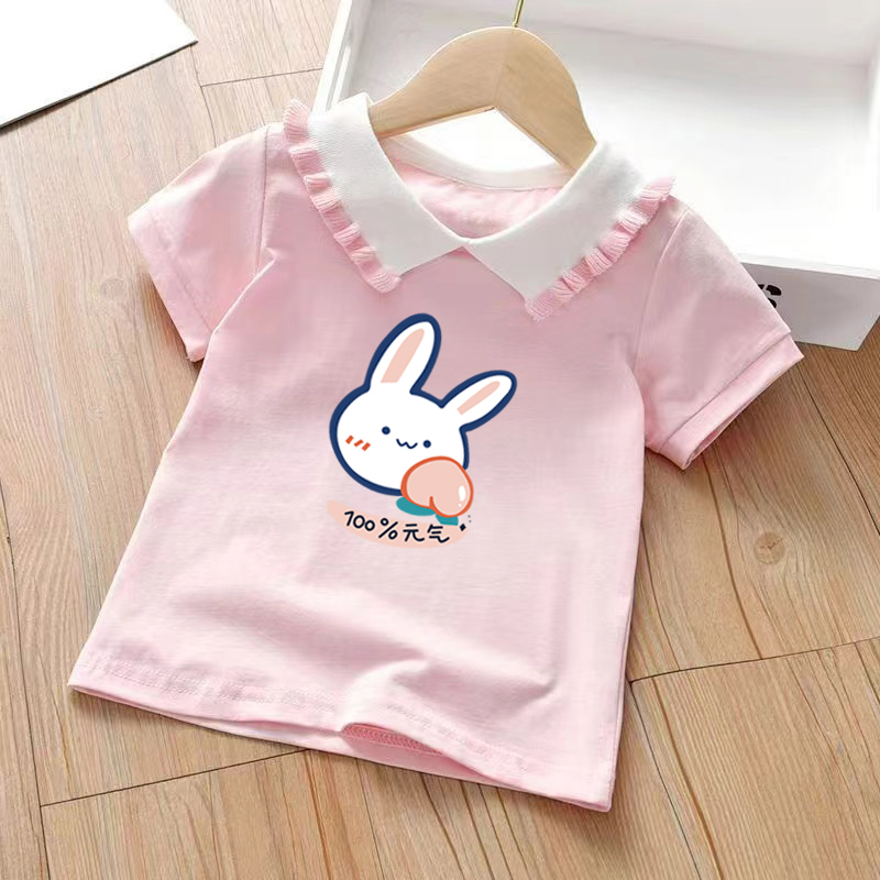 纯棉女童装POLO短袖T恤2025夏季款小孩儿童宝宝时尚韩版印花上衣