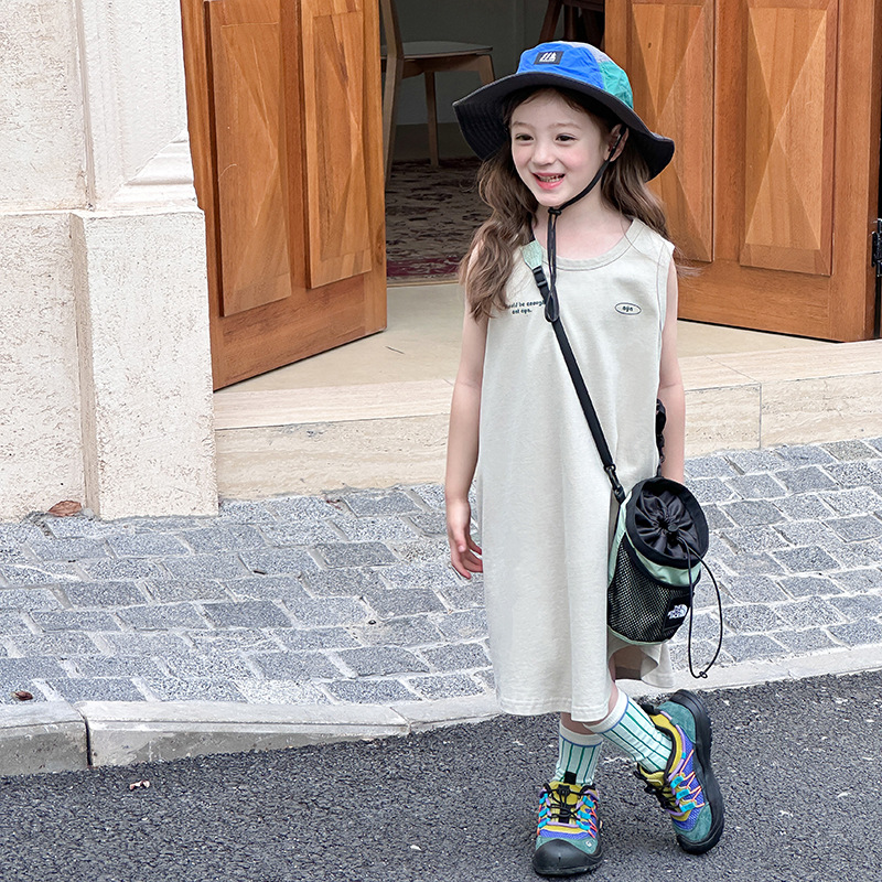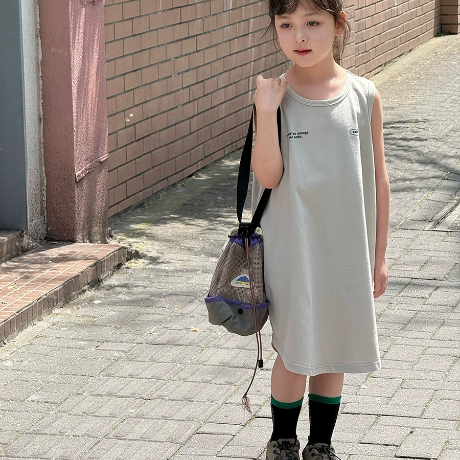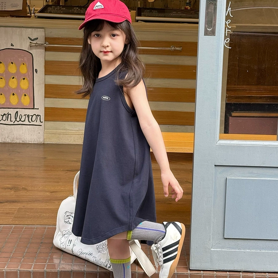 Yumi妈 儿童棉布女童韩版舒适裙子双纱柔棉时髦简约背心裙25C066