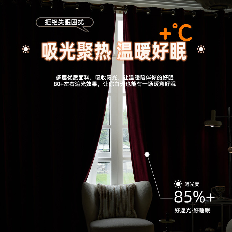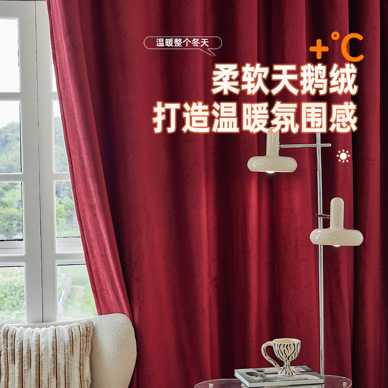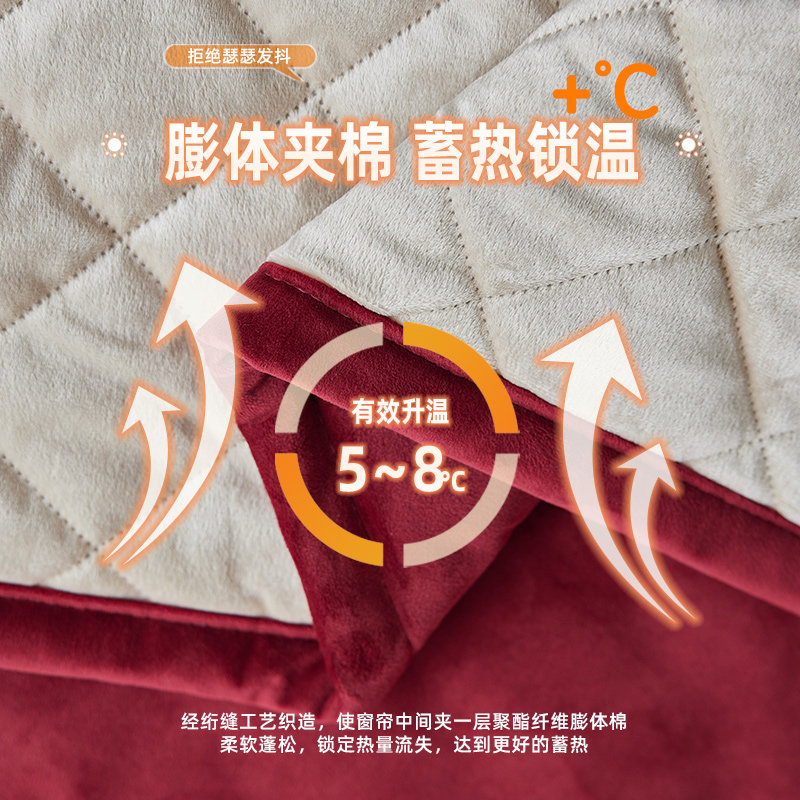 冬季新款酒红色夹棉加厚保温窗帘纯色挡风防寒保暖隔音卧室客厅帘