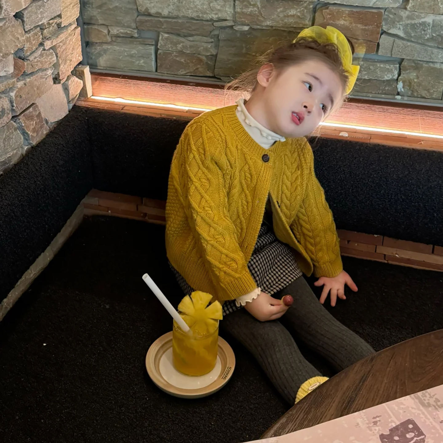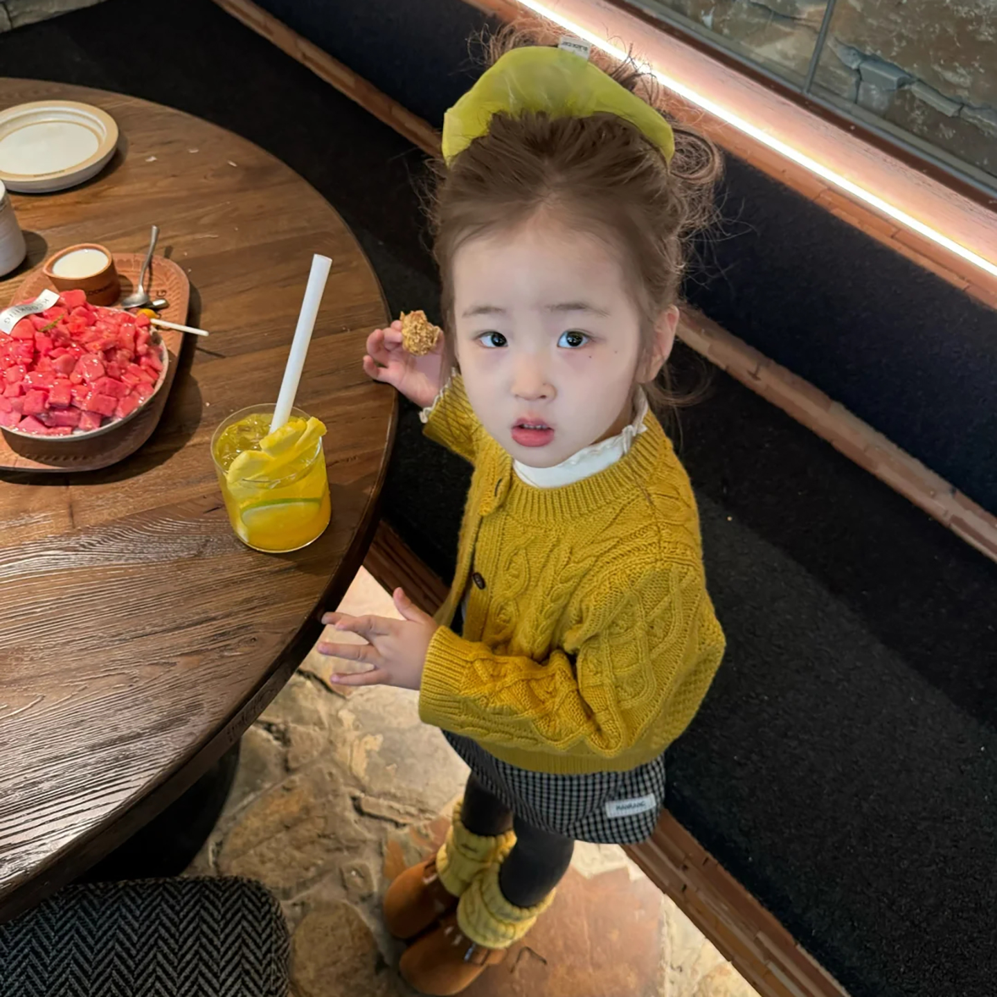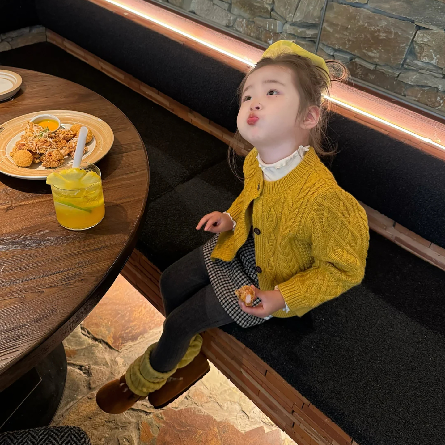 女童套装春秋款韩系小女孩时髦百搭针织开衫毛衣格子半身裙秋季