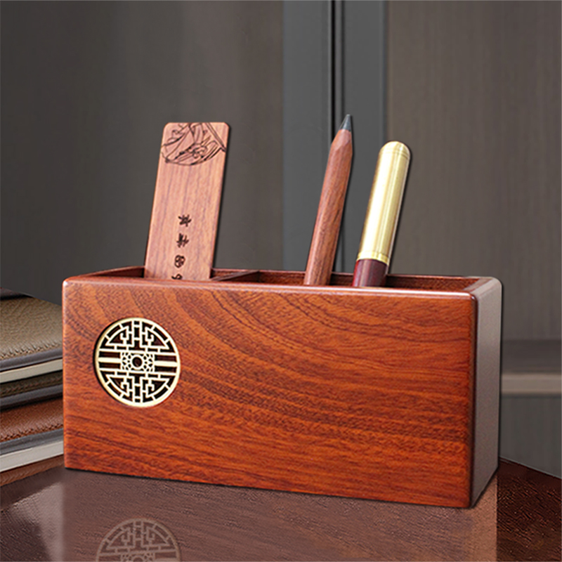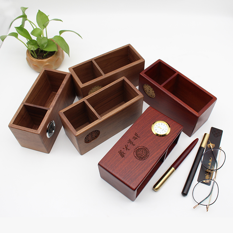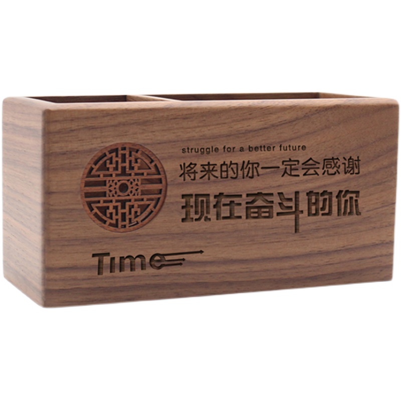 创意实木笔筒 礼品定制刻字多功能办公桌面木质收纳盒中式复古