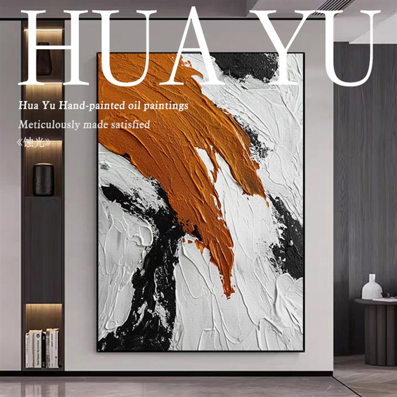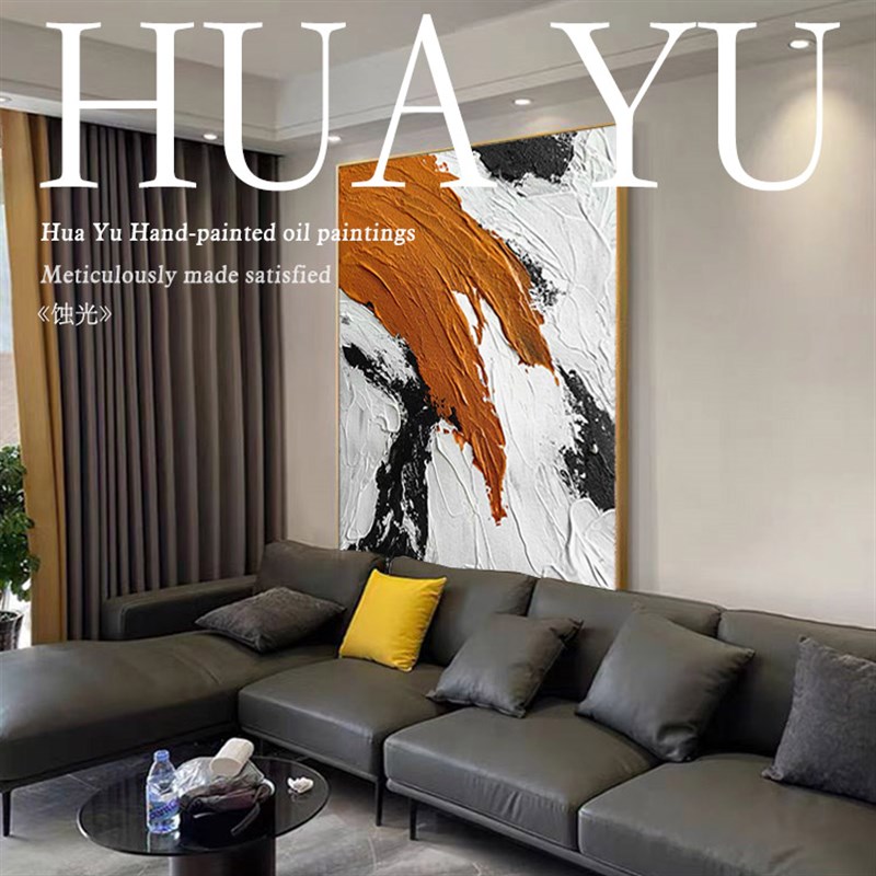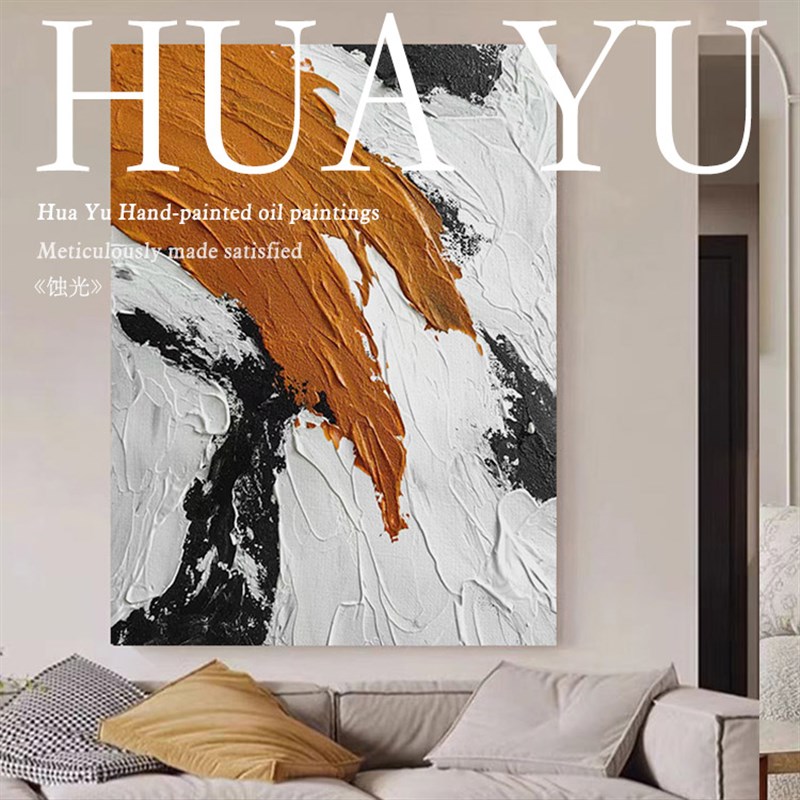 纯手绘油画立体抽象画黑白橙客厅沙发背景墙装饰画玄关挂画肌理画