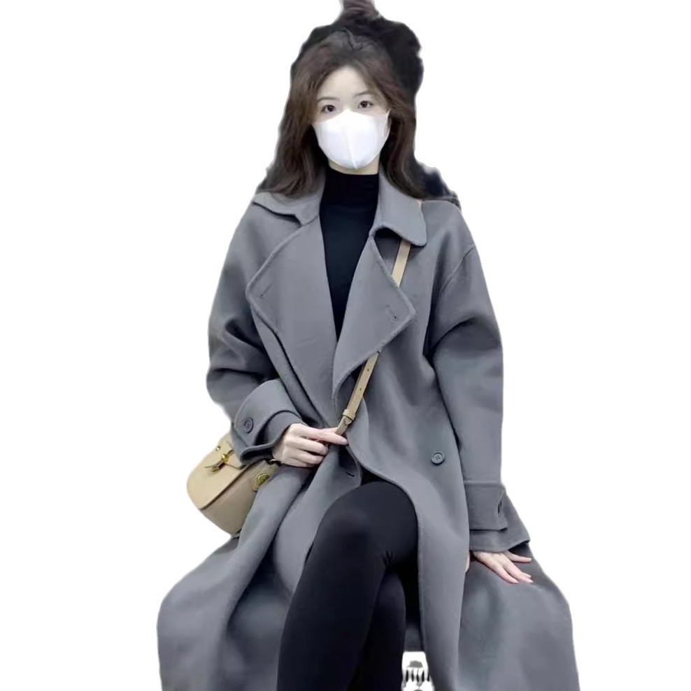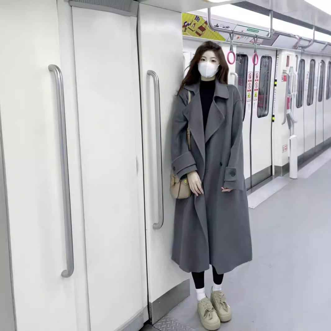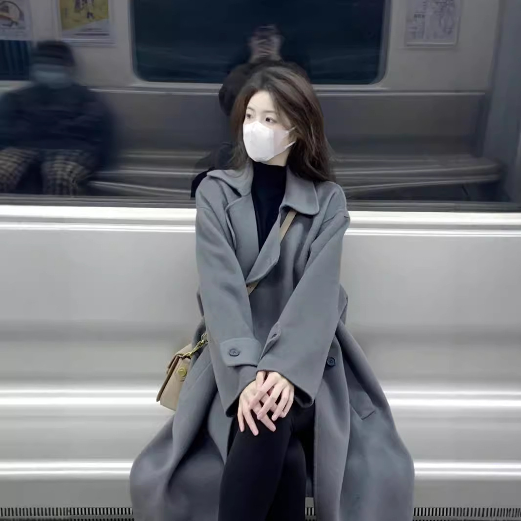 灰色呢子大衣女2025年秋冬季新款毛呢外套高级感冬天小个子中长款