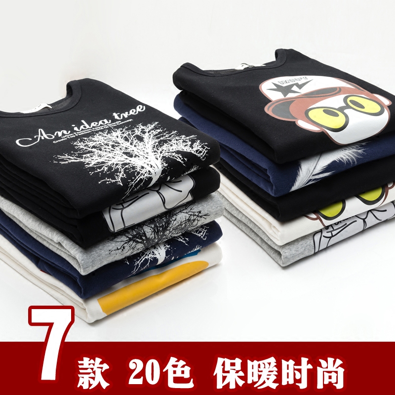 男装加绒加厚长袖t恤保暖内衣纯棉青年卡通圆领修身零下防寒上衣