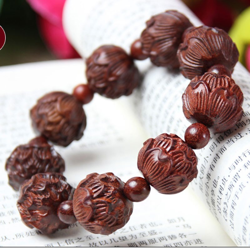 速发福缘阁小叶紫檀手串 十八罗汉貔貅莲花手链
