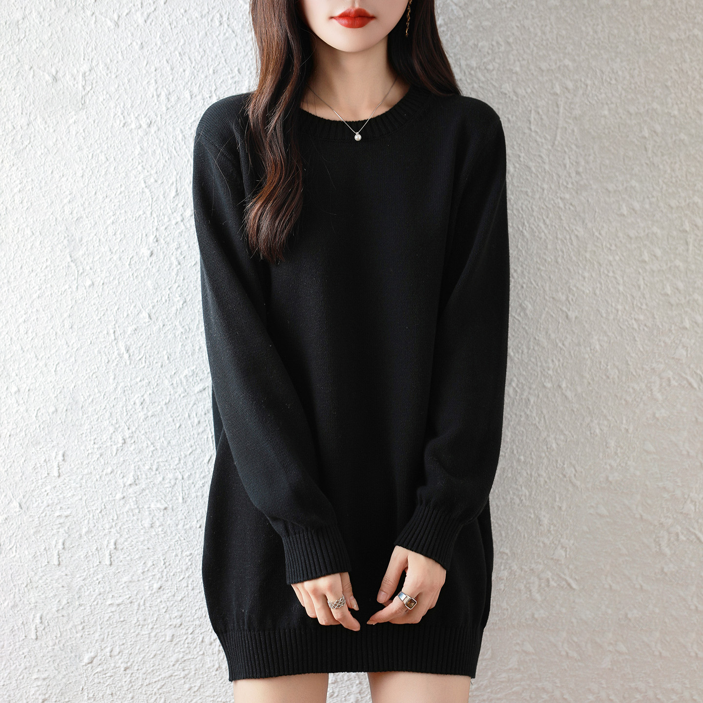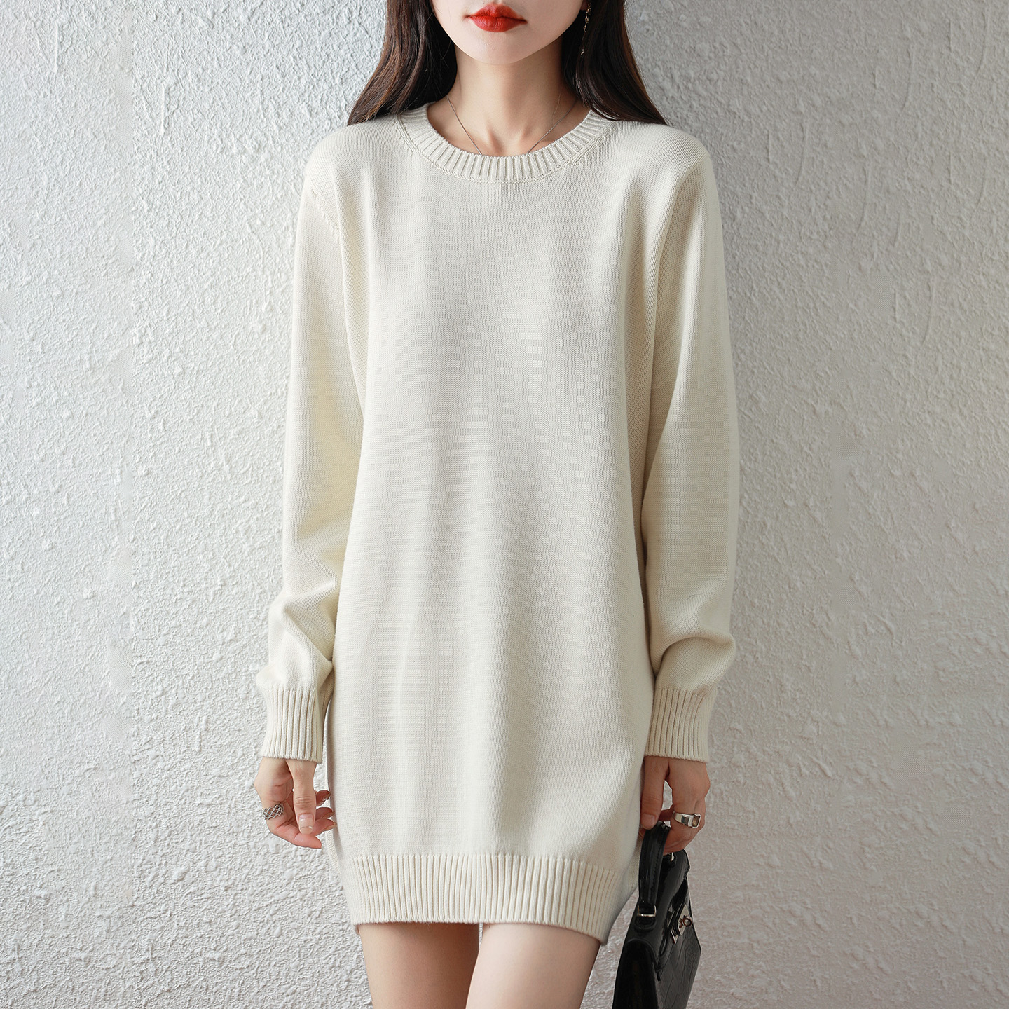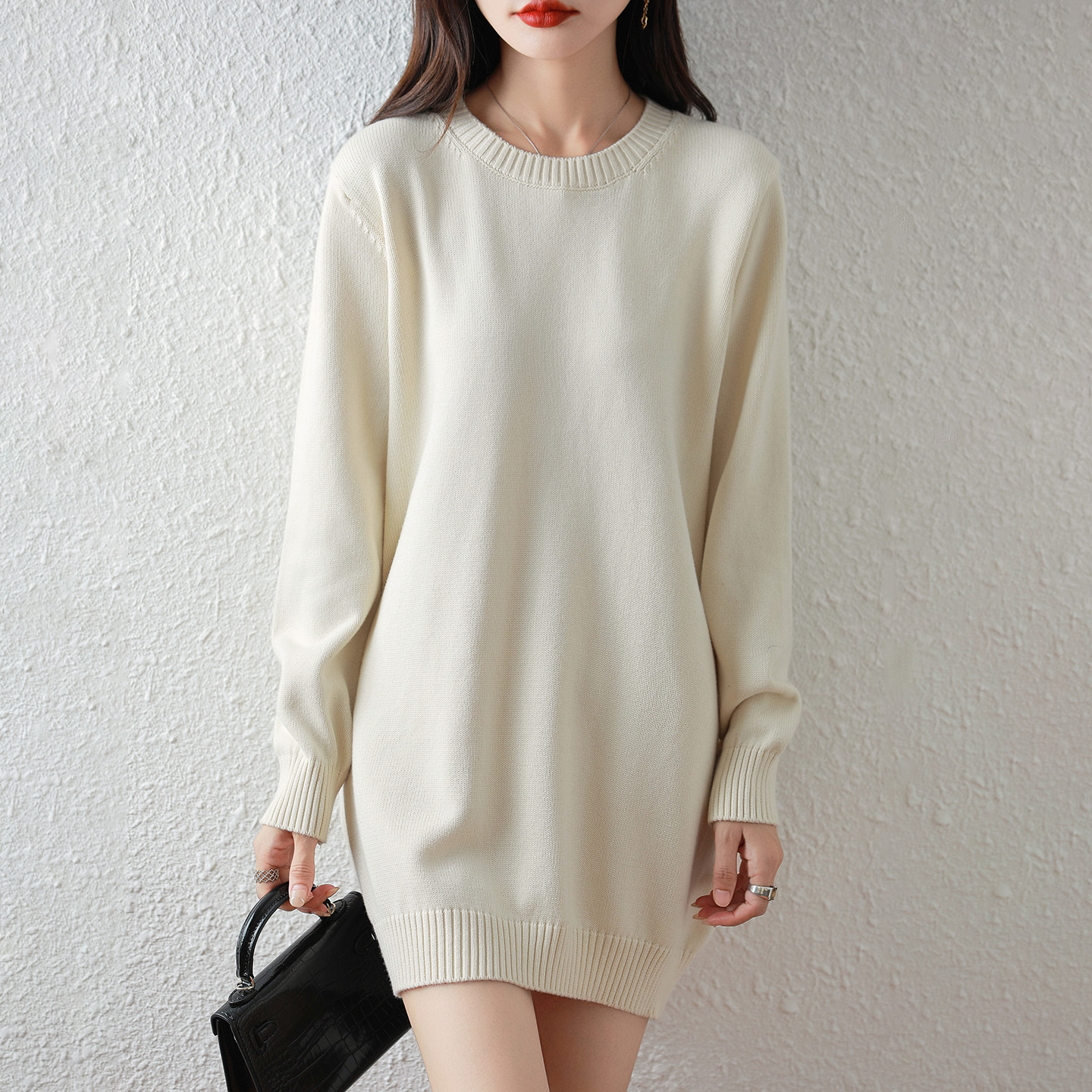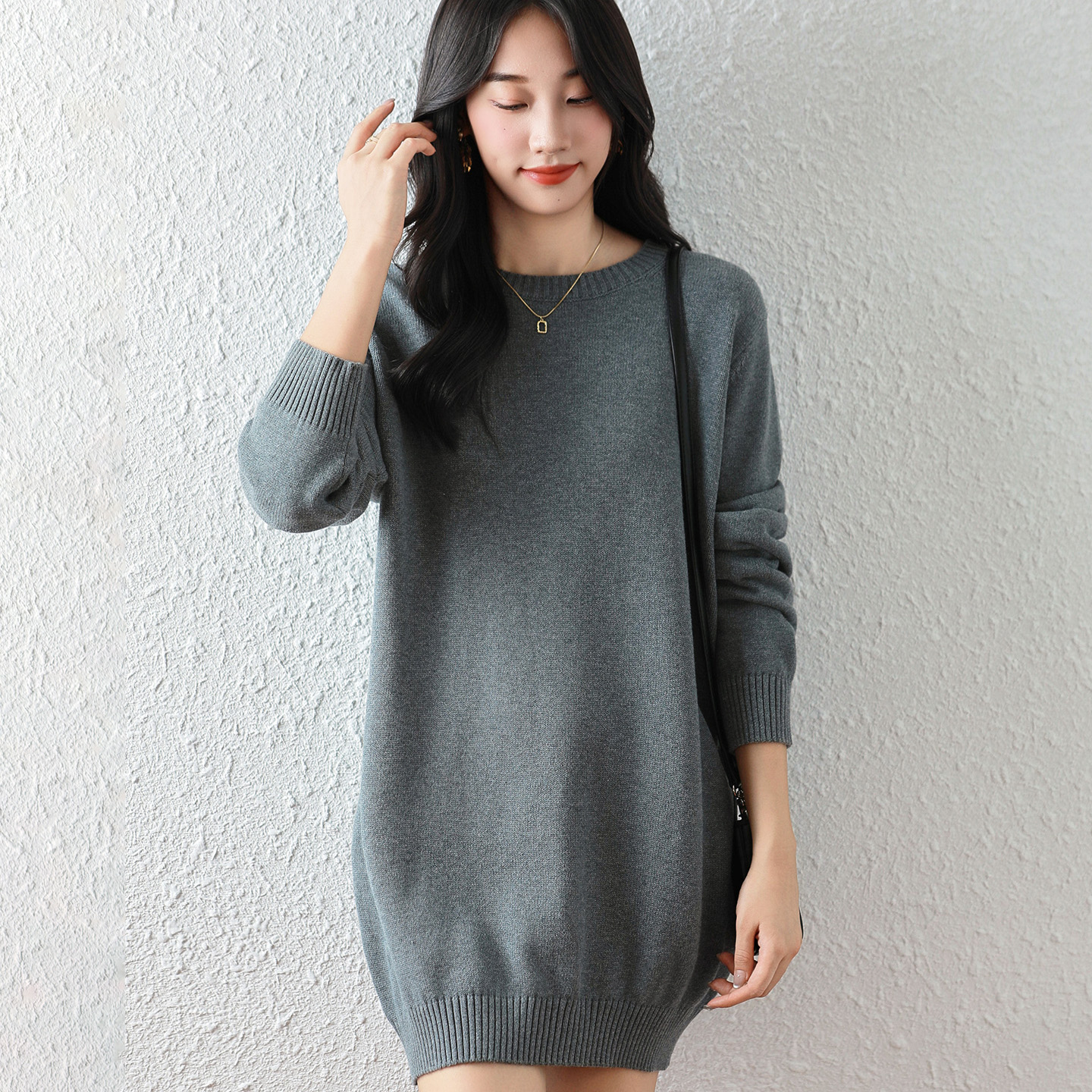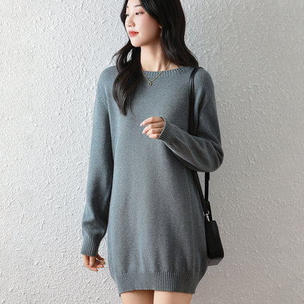 秋冬配大衣毛衣裙女100%纯棉宽松长袖内搭中长款打底衫针织连衣裙