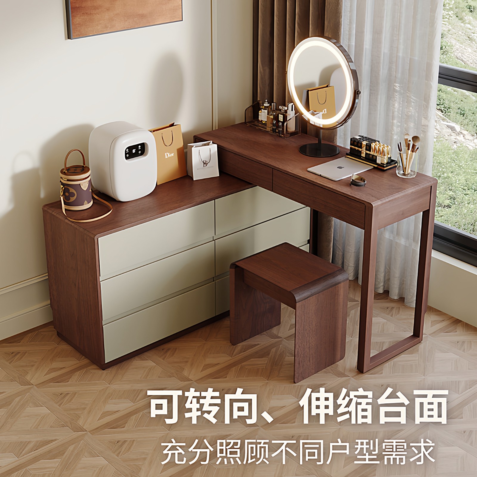 顾家家居实木胡桃木实木梳妆台家用卧室可伸缩转角斗柜一体化妆桌