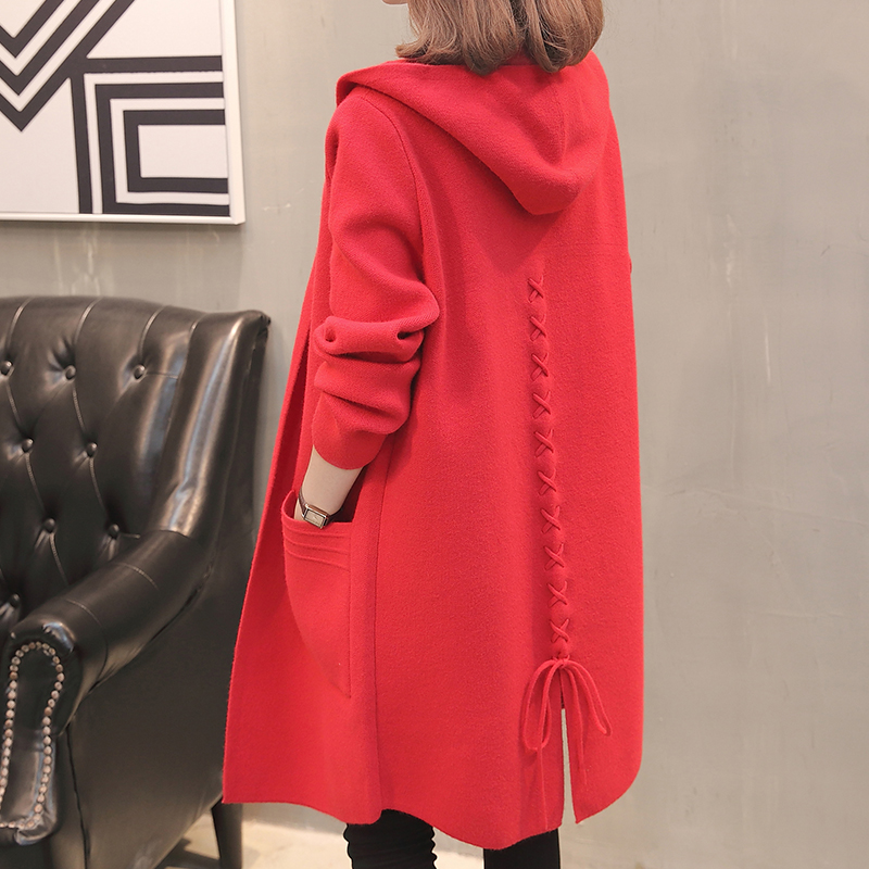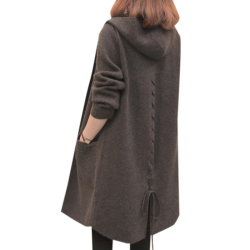 连帽中长款外套女针织开衫2025秋冬新款洋气时尚百搭外穿休闲大衣