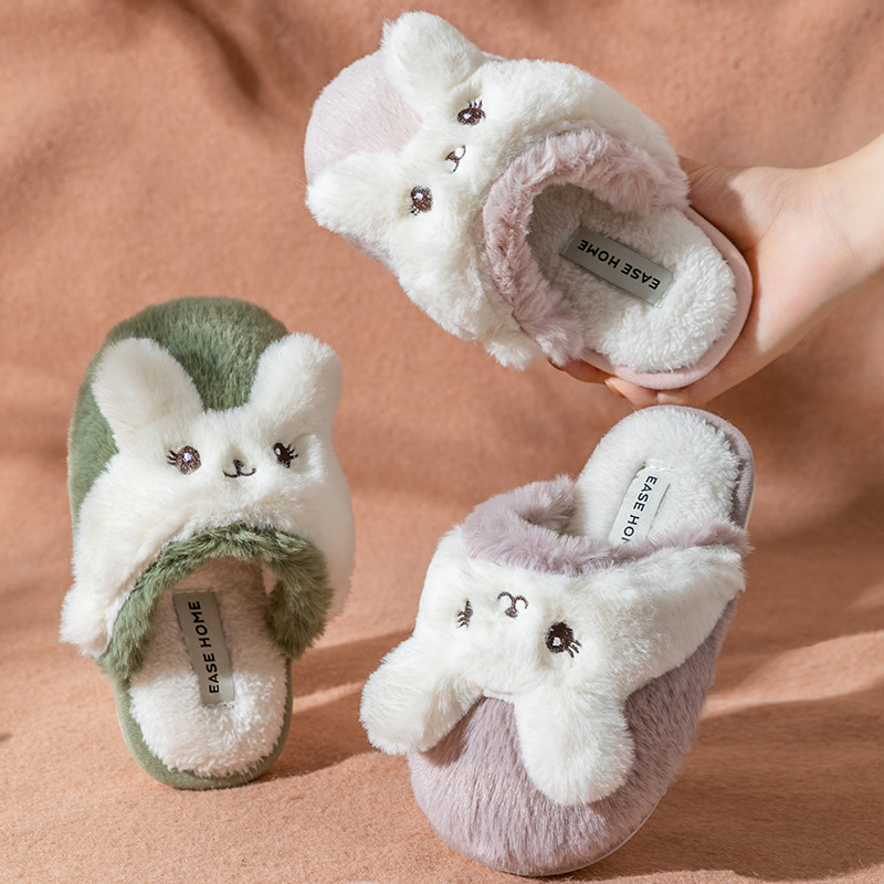 儿童棉拖鞋女童秋冬季室内家居防滑男童毛毛兔子亲子小孩宝宝棉鞋