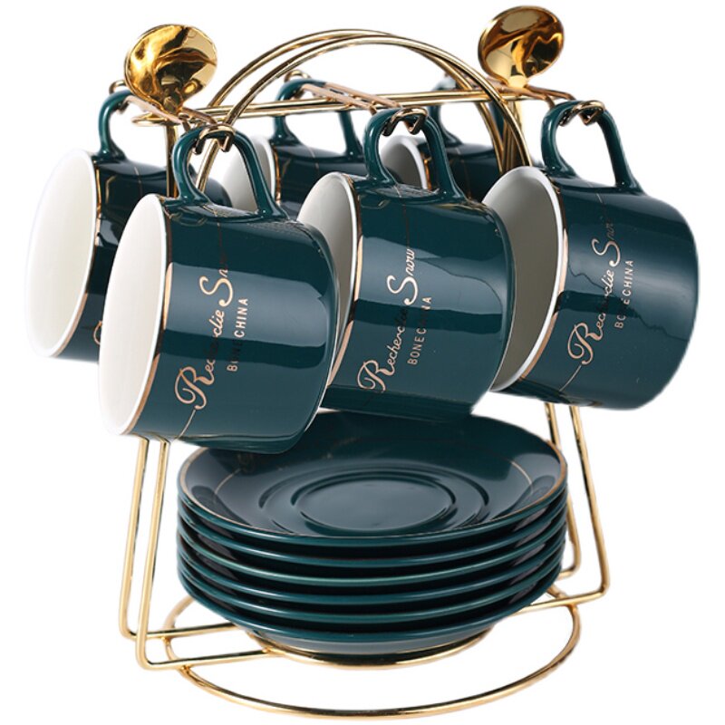 欧式陶瓷咖啡杯套装家用轻奢小奢华下午茶具简约小清新杯碟勺带架