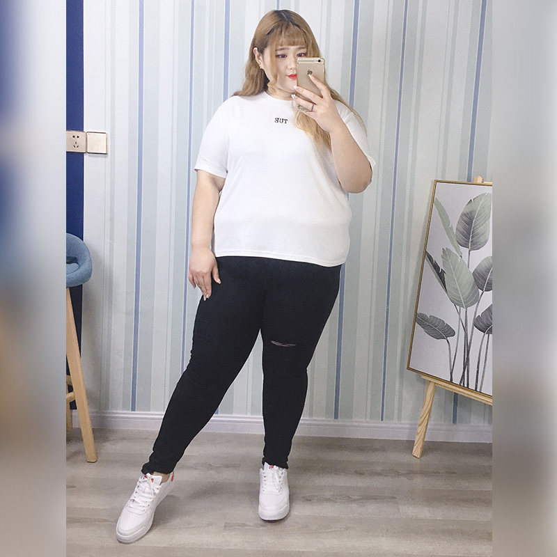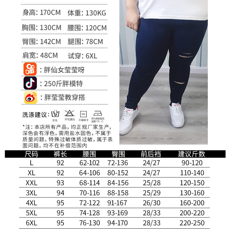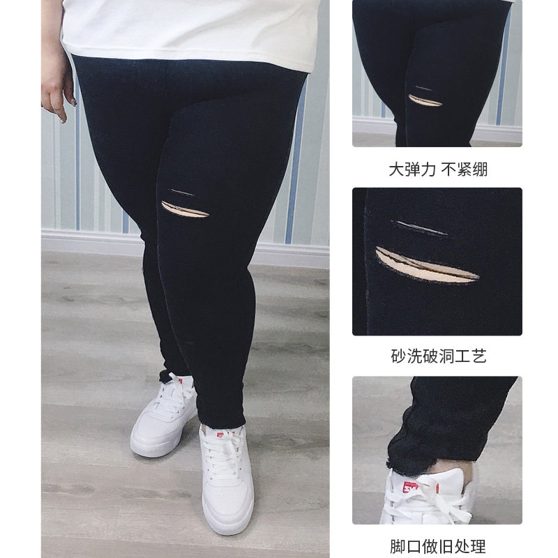 胖仙女莹莹大码女装韩版减龄外穿口袋牛仔裤膝盖破洞打底裤铅笔裤