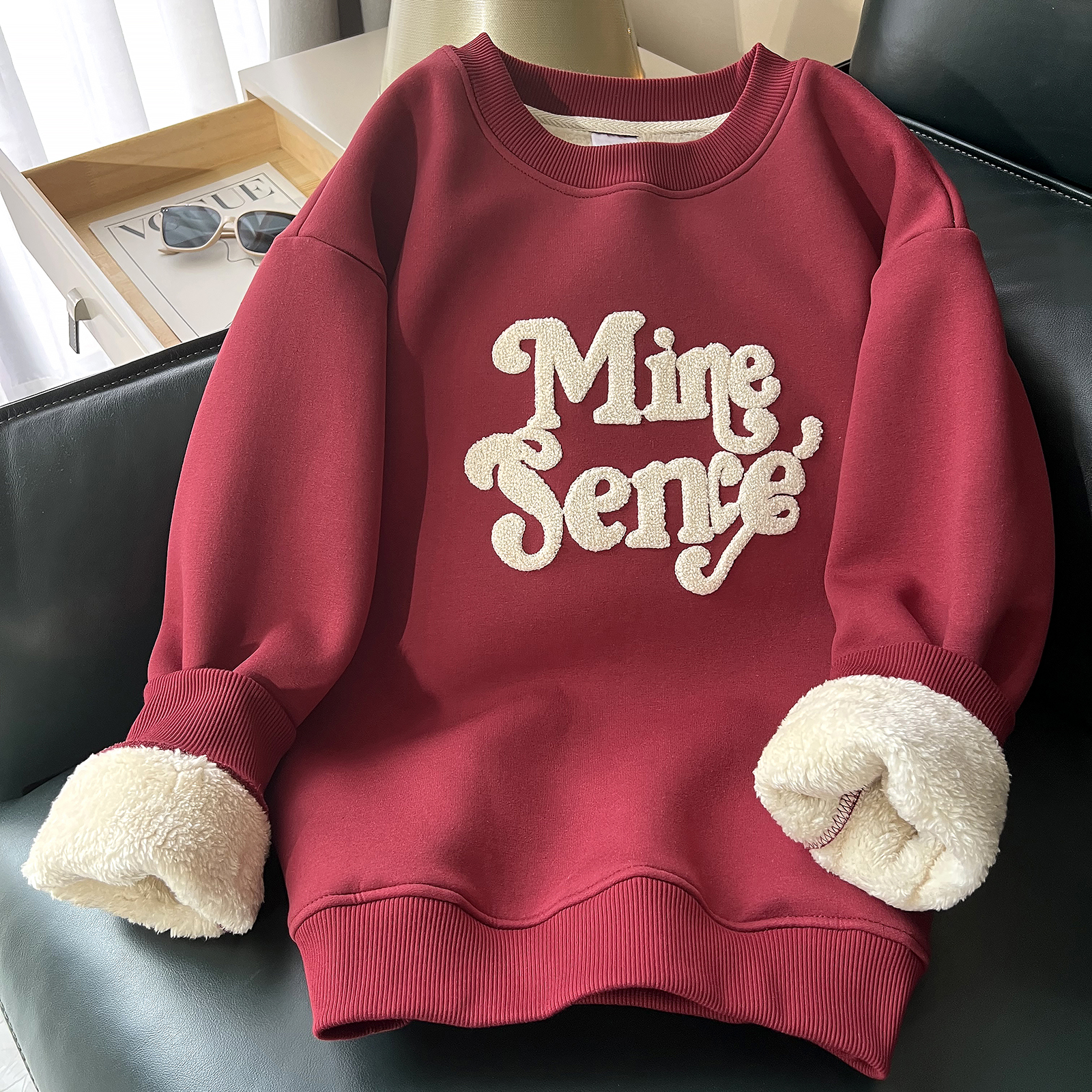 圆领卫衣女仿羊羔绒毛2025秋冬新款加绒加厚无帽套头美式复古上衣