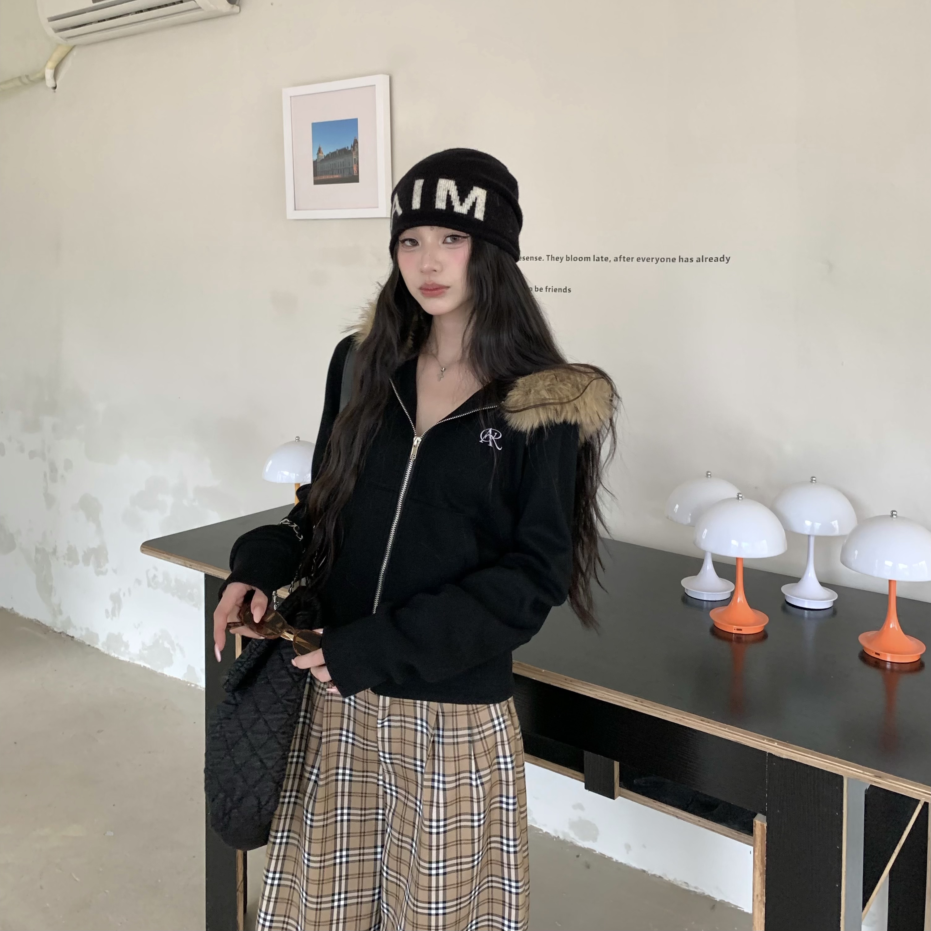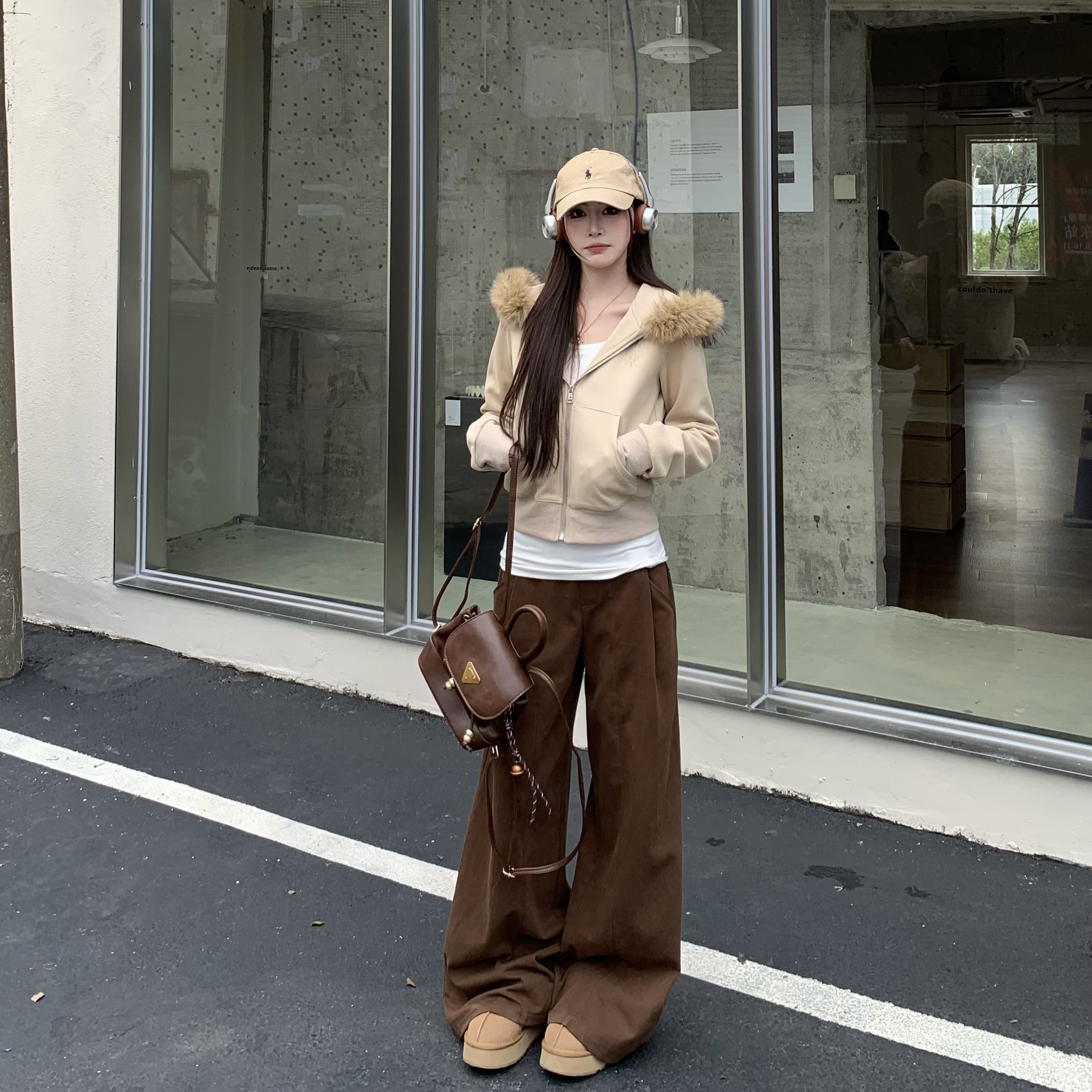 3MER哦哦三妹美式复古可拆卸毛领连帽卫衣女秋冬加绒显瘦开衫外套