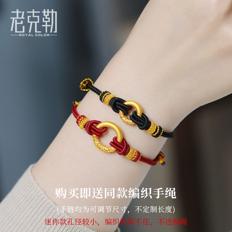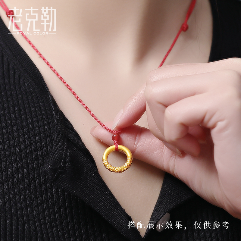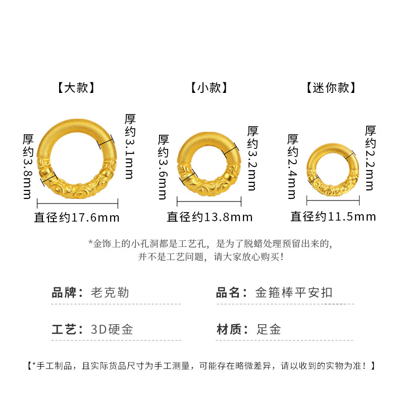 老克勒硬金黄金平安扣吊坠足金如意金箍圈手链手串项链项坠男女
