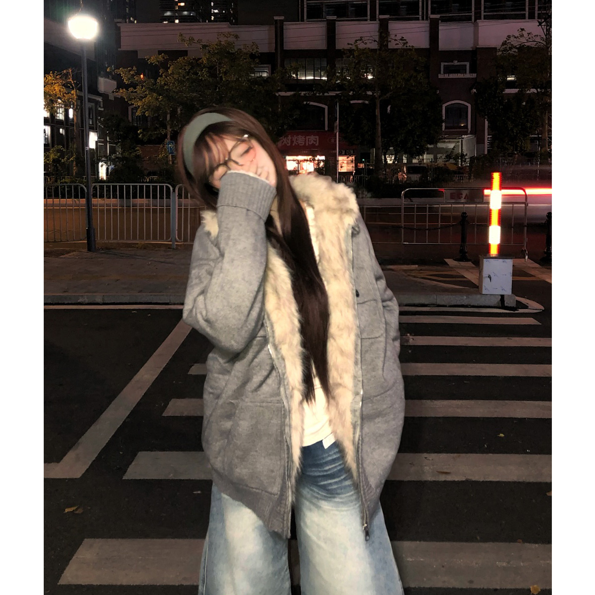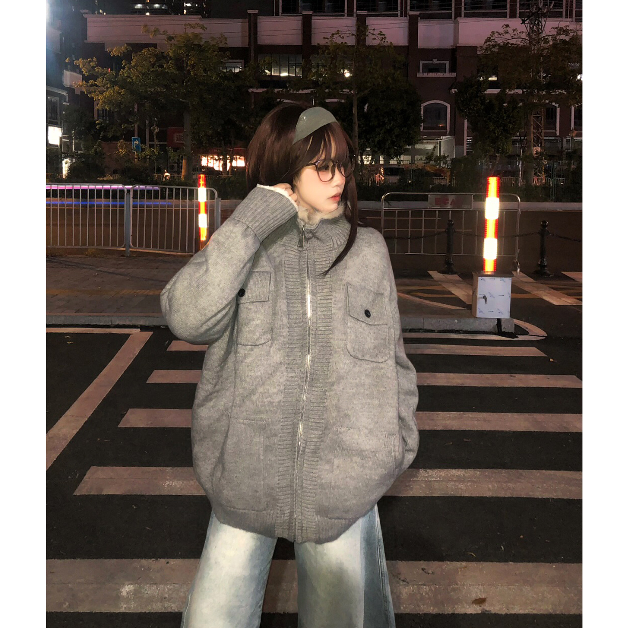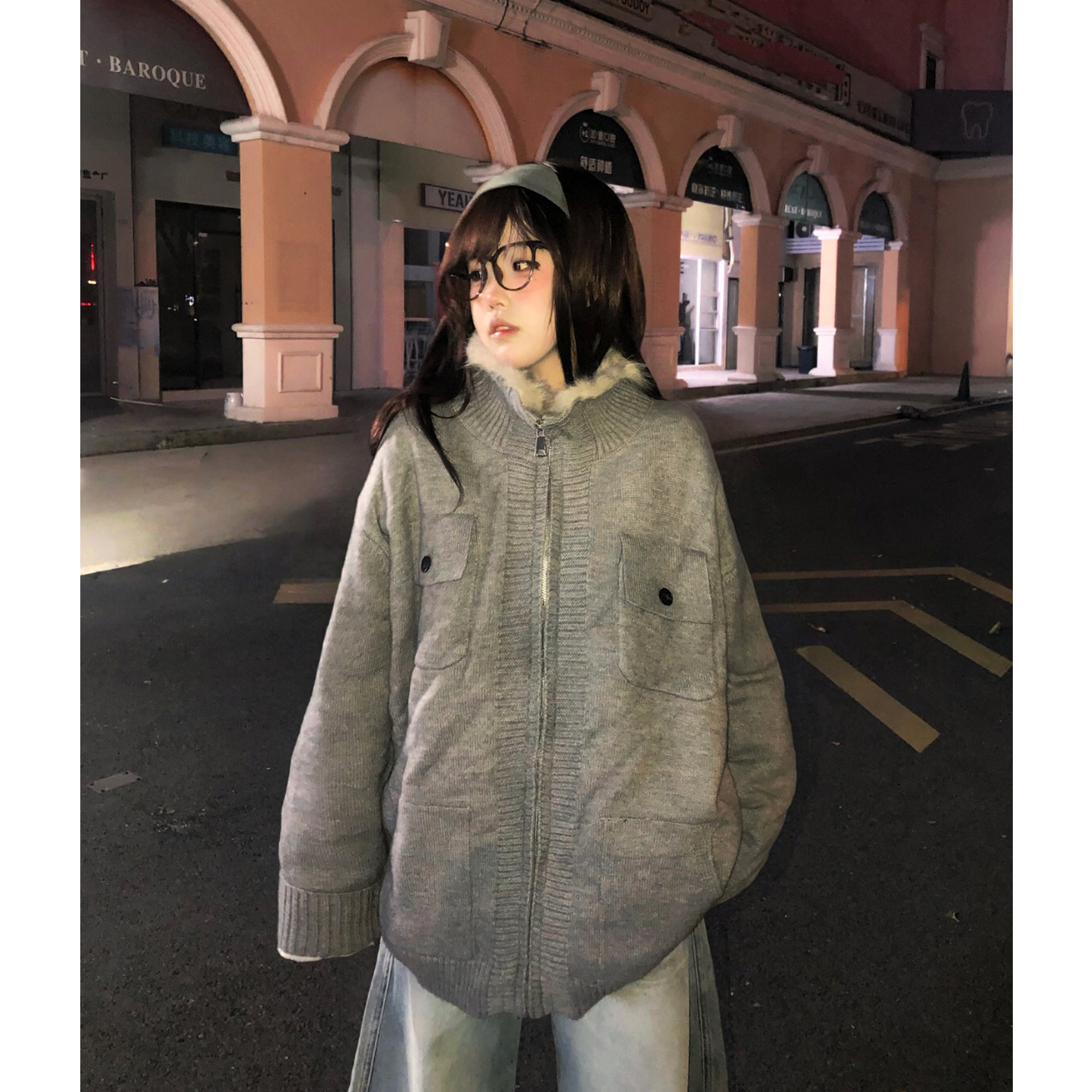 土豆猫复古加绒座山雕针织外套女