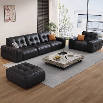 意式极简真皮沙发客厅现代简约大小户型轻奢头层牛皮直排沙发组合