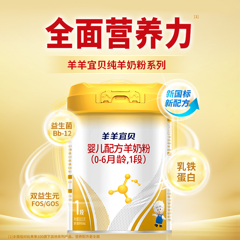 羊羊100羊羊宜贝羊奶粉1段 新生婴幼儿配方奶粉一段0-6个月 800g