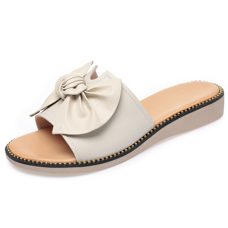 蝴蝶结新款时尚真皮软底外出凉